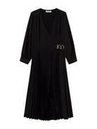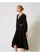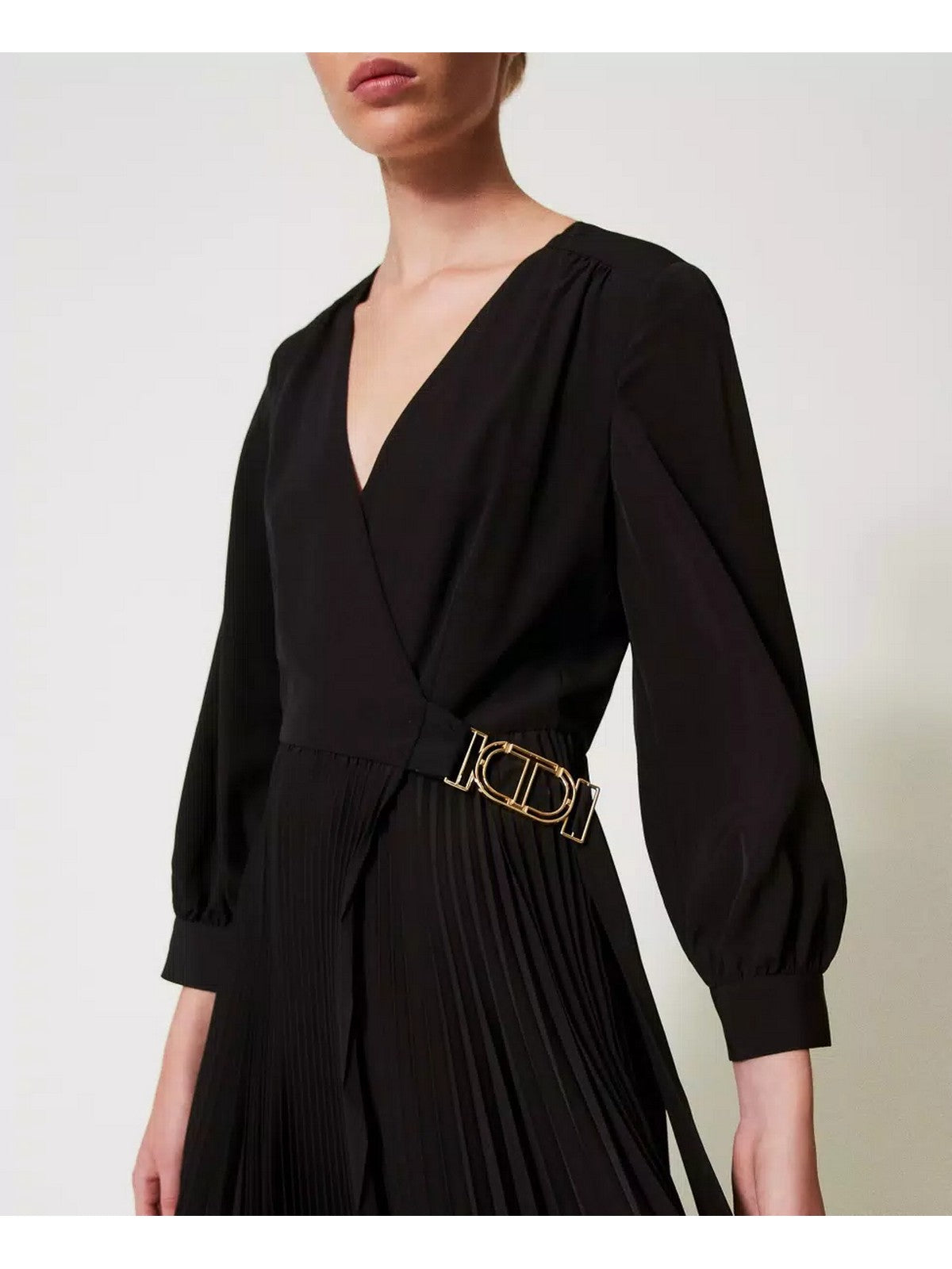 TWINSET longuette wrap dress in crepe de Chine closed with ribbons and a light gold-plated Oval T buckle.