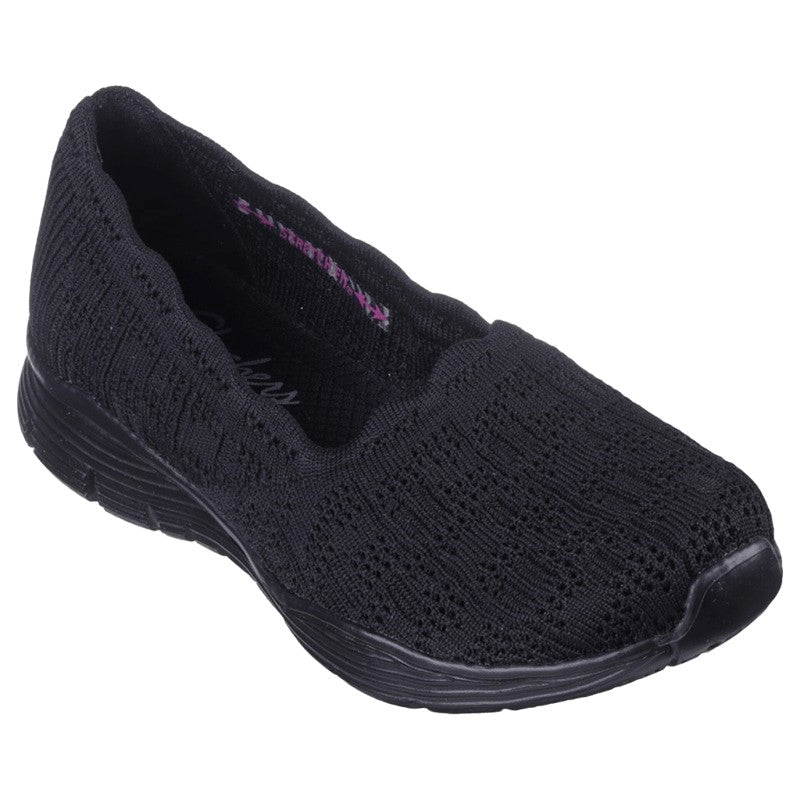 SKECHERS SEAGER HIGHERSELF BALLERINA. Opt for elegant and versatile style with the Skechers Seager - Higherself. This pull-on features a Stretch Fit® engineered knit upper with a cushioned Skechers Air-Cooled Memory Foam® insole. Outsole: SYNTHETIC Upper: FABRIC Insole Lining: TEXTILE CODE: 158867