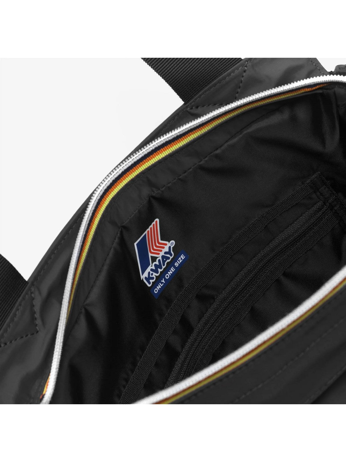 K-WAY "Aisy" bag made of waterproof, water-repellent, and windproof ripstop nylon. Reinforced fabric applied to the base for added durability. Side pockets. Main opening with K-Way zip. Internal zip pocket. White silicone logo.