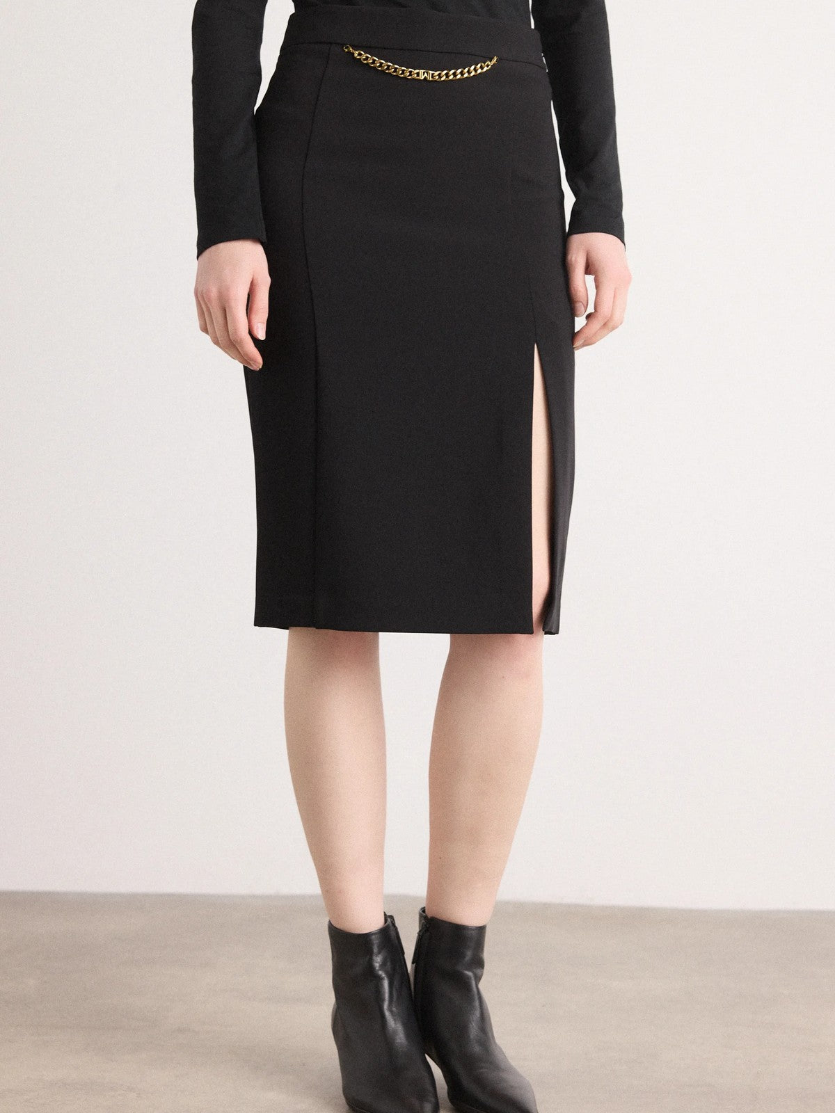 MARCIANO Gonna Donna ELLA W/CHAIN MIDI SKIRT 5YGD07 7357A JBLK Jet Black A996