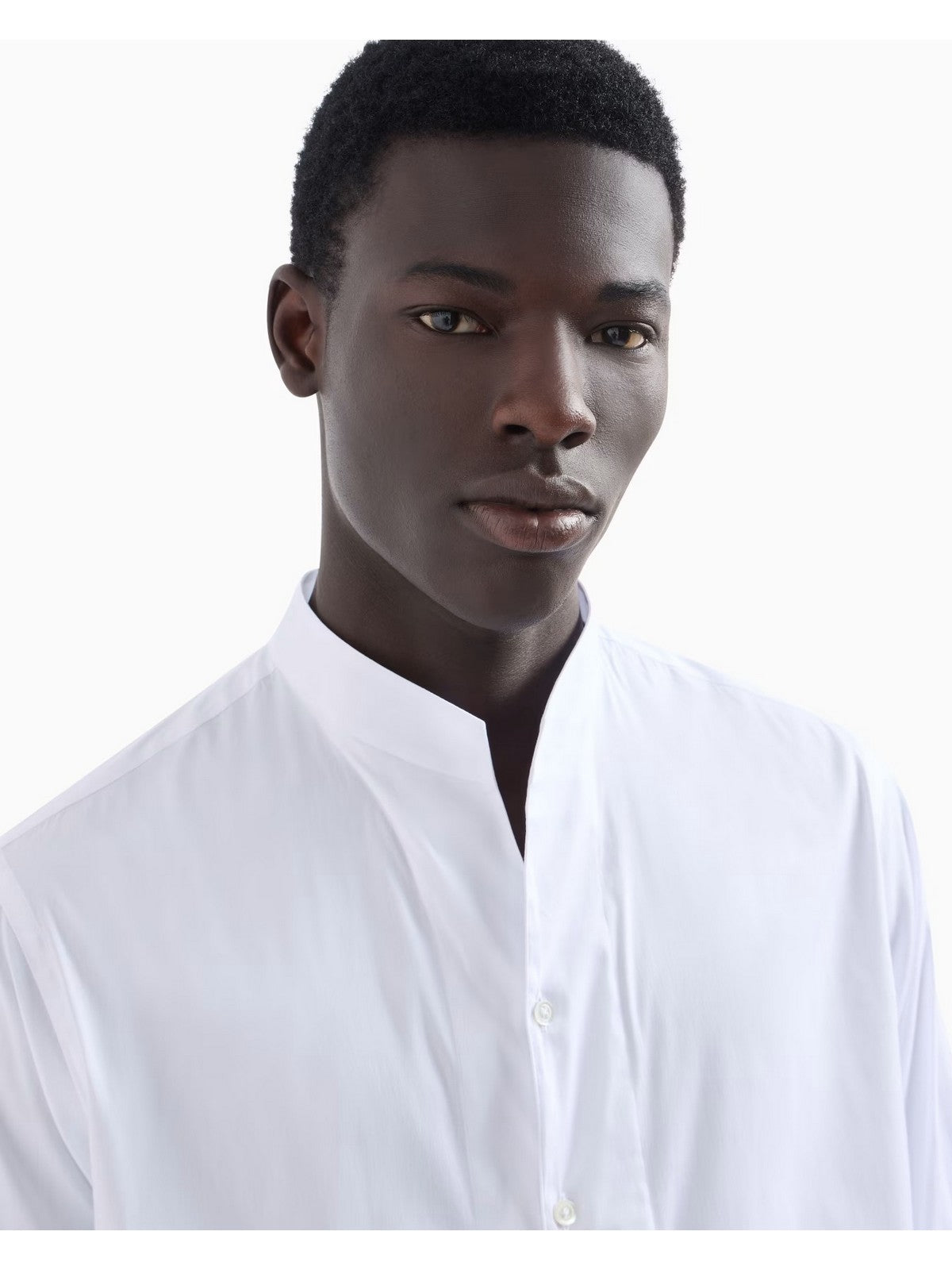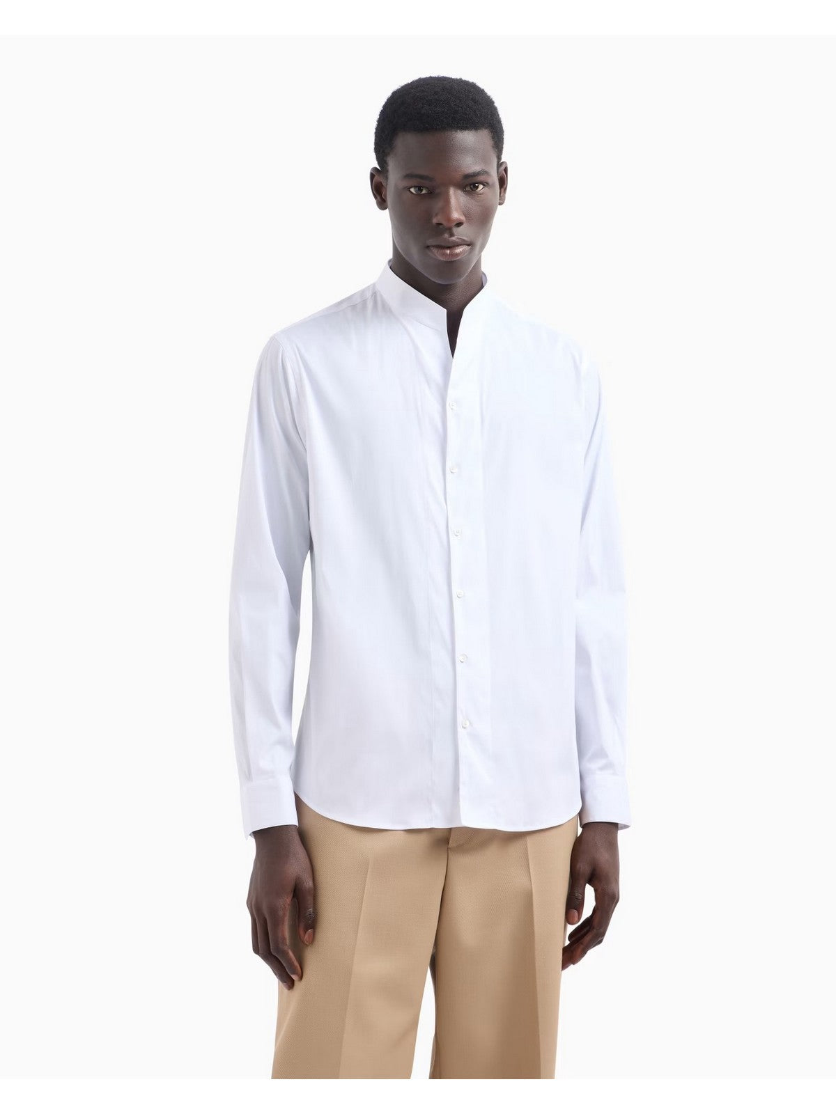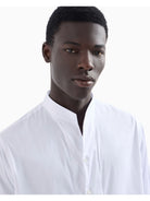 EMPORIO ARMANI shirt featuring the iconic guru collar in stretch cotton satin.