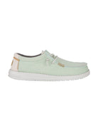 The HEY DUDE 'Wally Coastline Jute' loafer features a two-tone woven fabric upper.