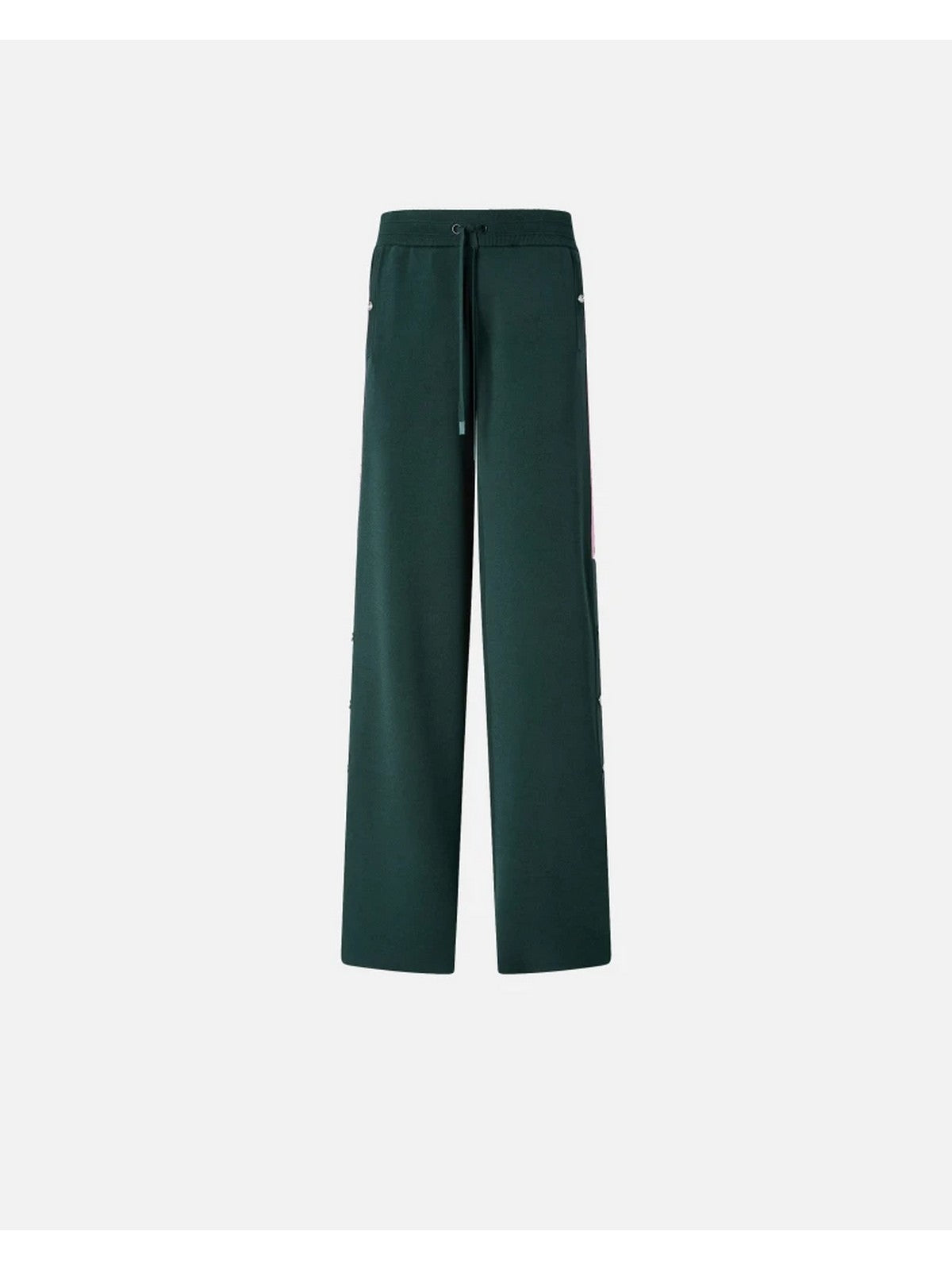 Pantaloni sportivi stile tracksuit in piquet effetto felpa tecnica, dotati di pratiche tasche laterali e profilati da una banda laterale a contrasto lungo la gamba ampia. La vestibilità del modello può essere regolata mediante l'elastico e la coulisse in vita, mentre il tocco finale è dato dal logo Love Birds sul retro. Il capo è stato sottoposto a prove di finissaggio per ridurre al minimo la possibile formazione di pilling, garantendo una maggiore morbidezza e durabilità del tessuto.