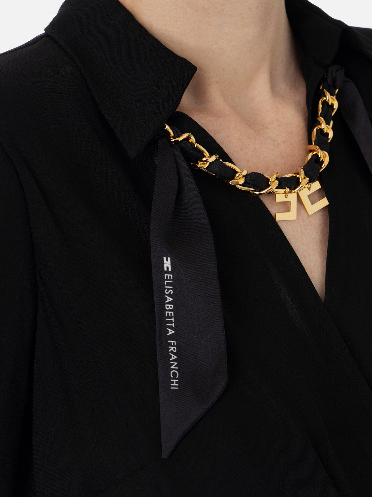 Jewel scarf woven with groumette chain and embellished with pendant charms with logo.