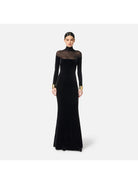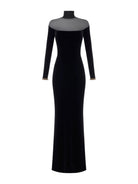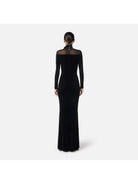 Abito da sera ELISABETTA FRANCHI in velluto. Impreziosito dai dettagli gioiello in catena che illuminano i polsi. Accessori in metallo dorato