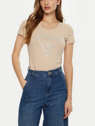 GUESS Women's T-shirt SS CN SHINY TRIANGLE TEE W5RI11 J1314 A90F CEMENT