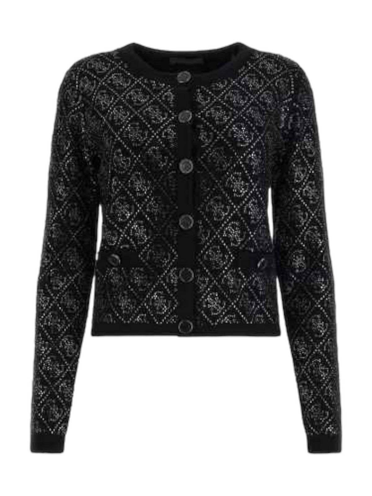 GUESS Women's Cardigan PAIGE 4G STONES LS CARDI SWTR W4YR25 Z3FN0 JBLK Black