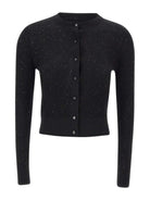 Cardigan MAXMARA in filato di lana e seta a coste, impreziosito da un ricamo di micro paillette.