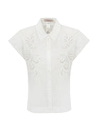 TWINSET shirt in light cotton poplin with natural finish embellished with matching thread embroidery.