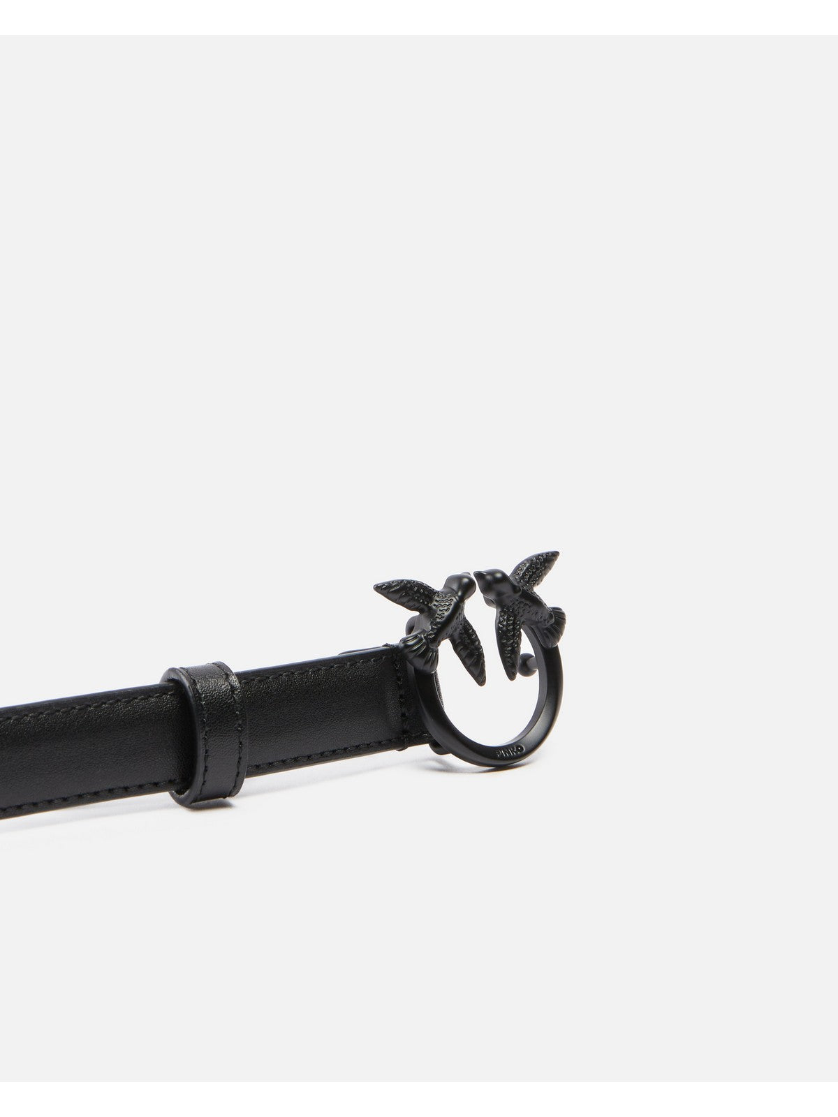 Cintura sottile PINKO in morbida pelle mano seta color block con mini fibbia Love Birds Diamond Cut in metallo, galvanica smaltata in tono colore.