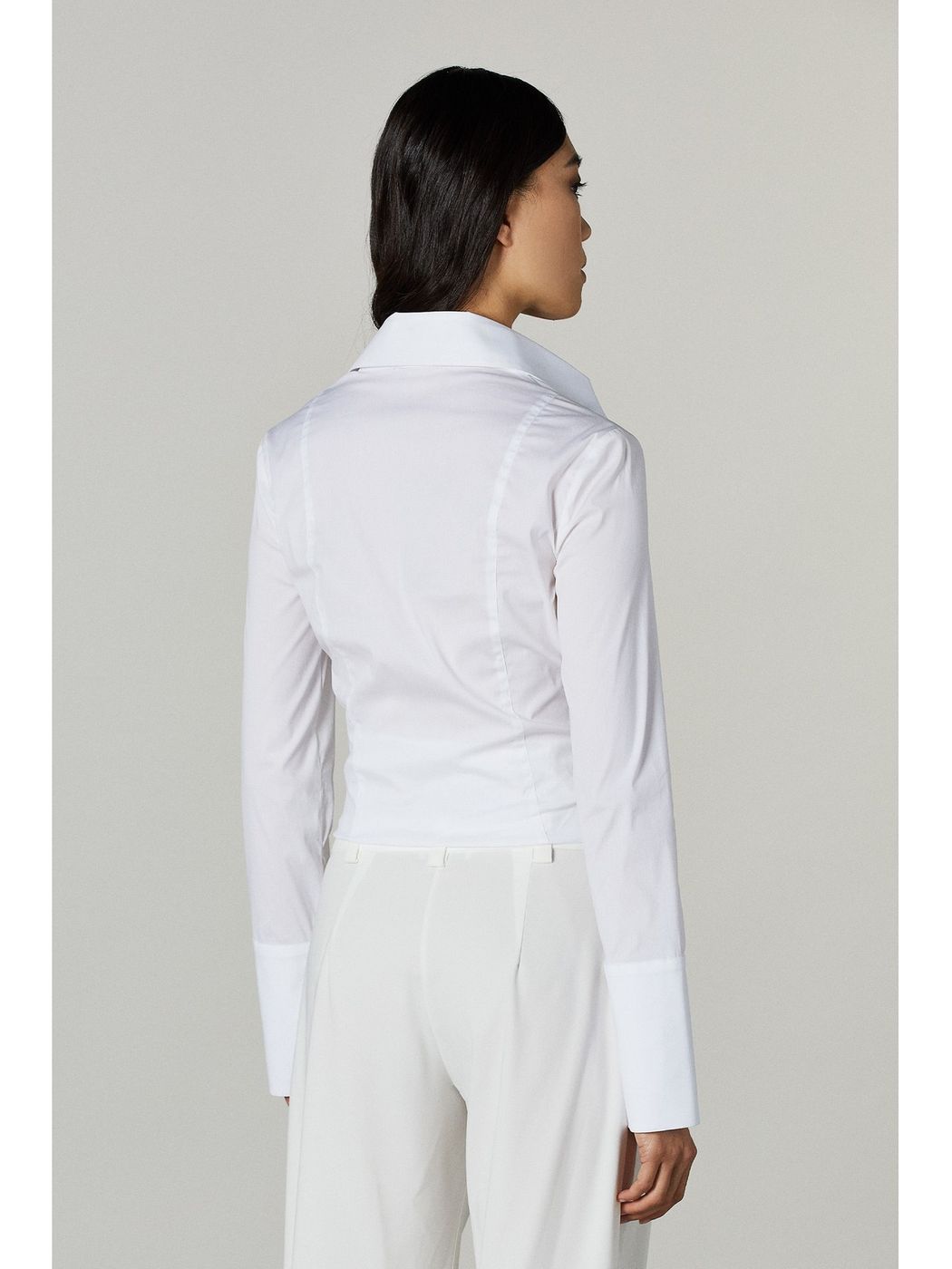 Patrizia Pepe shirt in stretch poplin cotton. Closure with buttons of the same color. High cuffs with slits and fly detail. Slim fit. Main fabric: 67% Cotton, 27% Polyamide, 6% Elastane