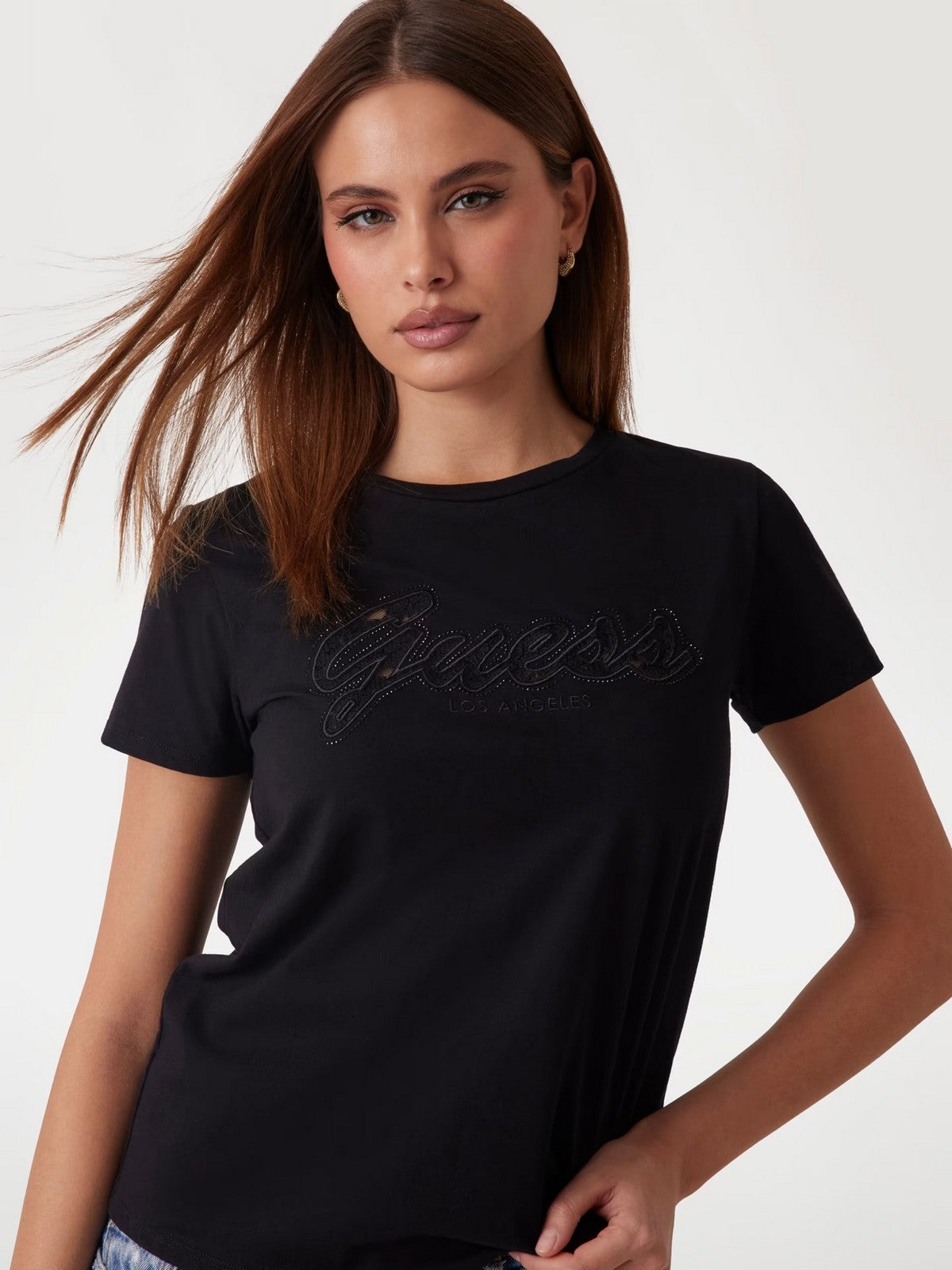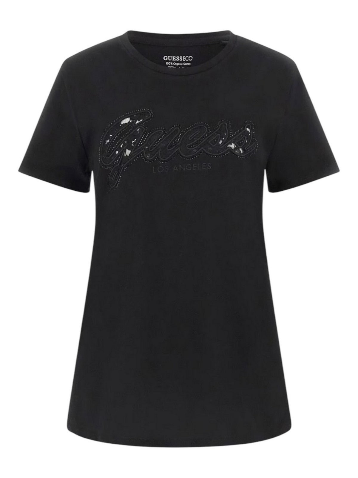 GUESS Women's T-shirt SS SCRIPT LACE LOGO EASY TEE W5RI08 K9RM1 JBLK Black