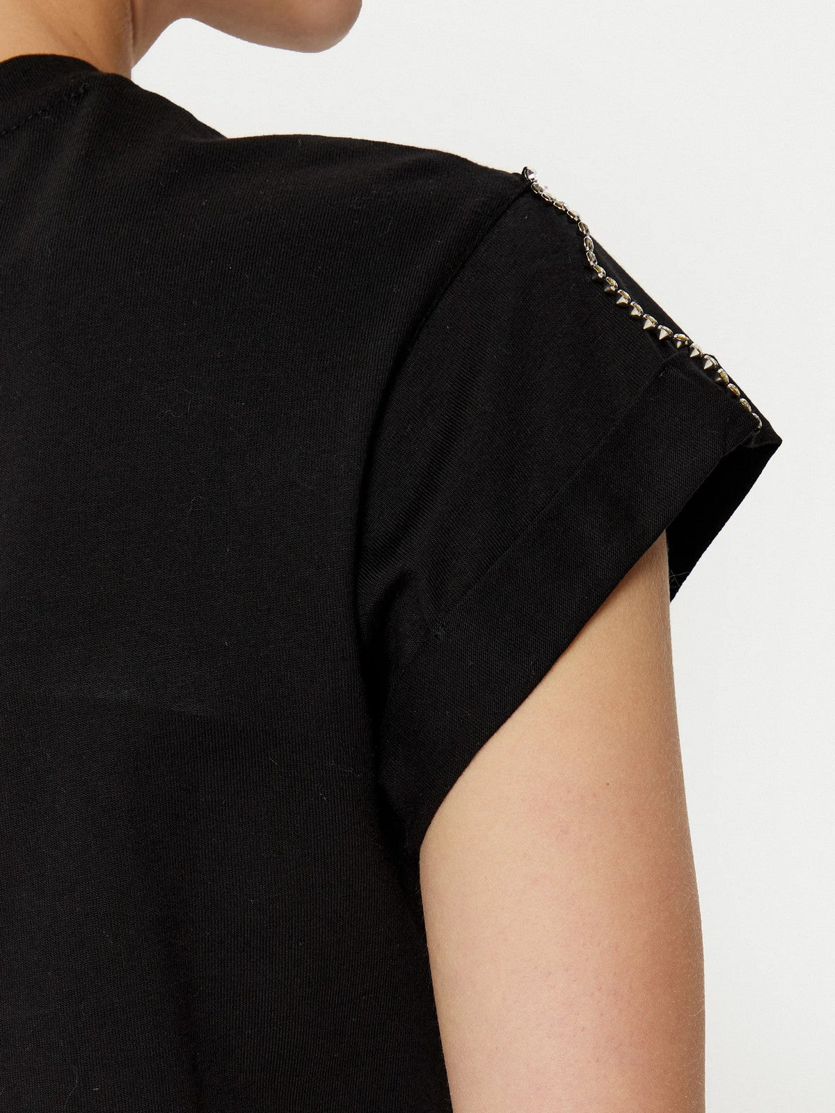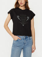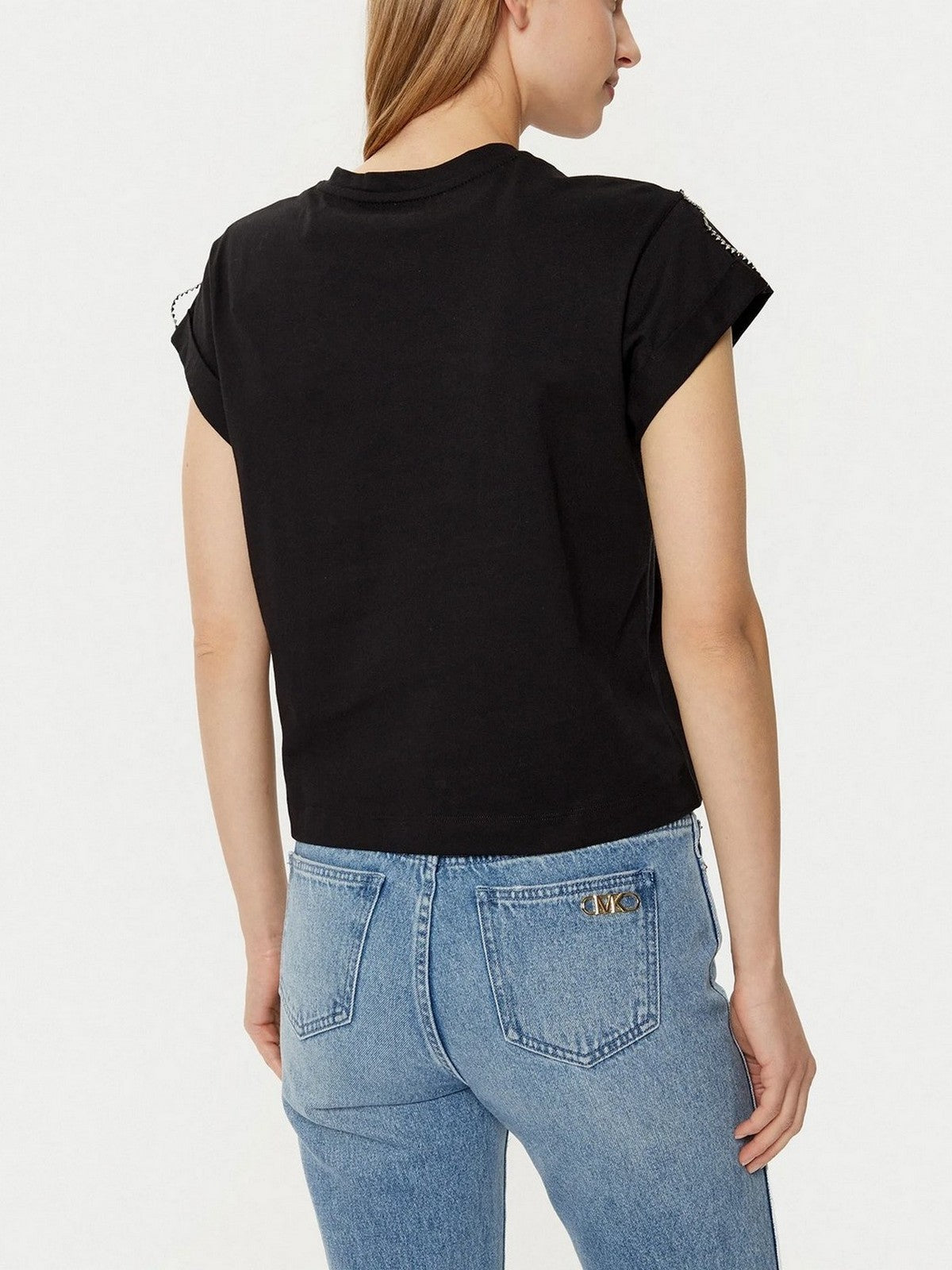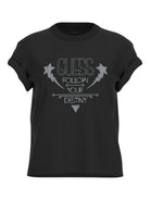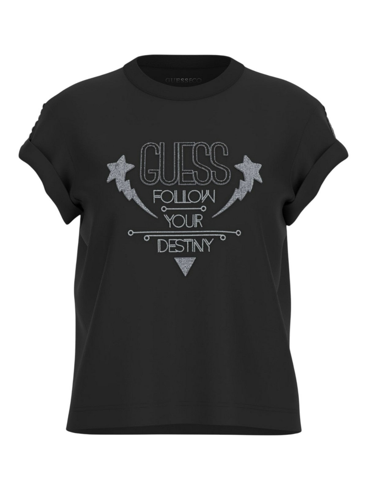 GUESS Women's T-shirt SS CN SLEEVES STRASS DETAIL W5RI06 I3Z14 JBLK Black