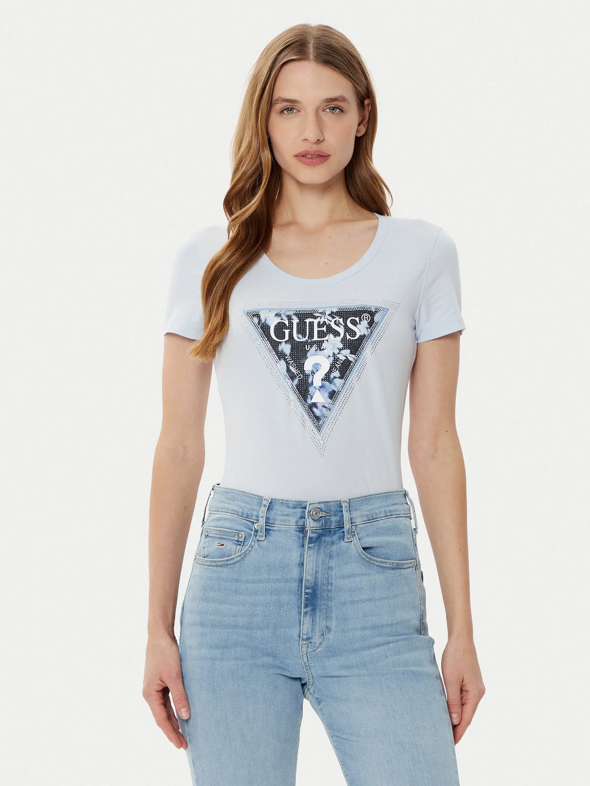 GUESS Women's T-shirt SS CN TRIANGLE FLOWER TEE W5RI00 J1314 G7S1 Blue