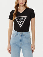 GUESS Women's T-shirt SS VN PYTHON TRIANGLE TEE W5RI21 J1314 JBLK Black
