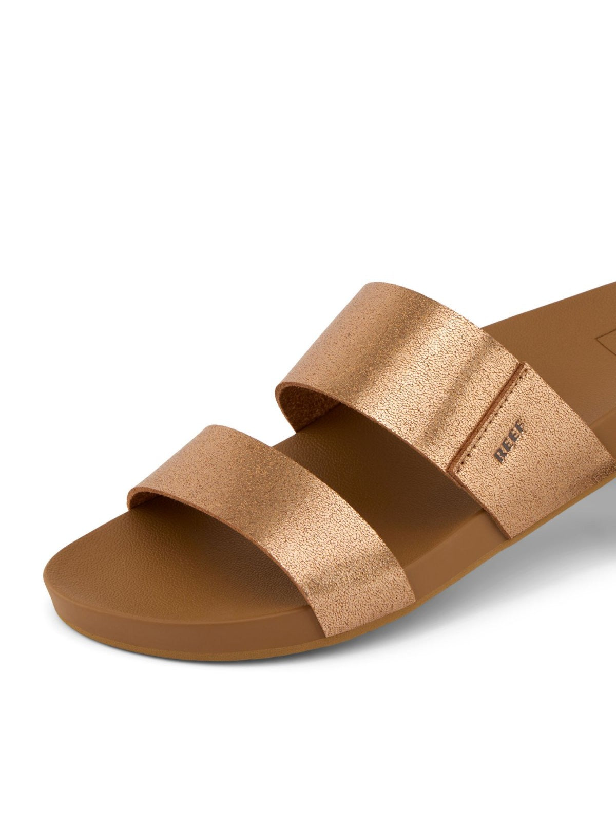 REEF slipper featuring an upper with two super soft bands unlined in PVC-free vegan leather.