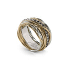 Filodellavita Classic Collection Ring, 13 Strands in 9kt Yellow Gold, .925 Silver and 16 Black Diamonds 0.21 ct