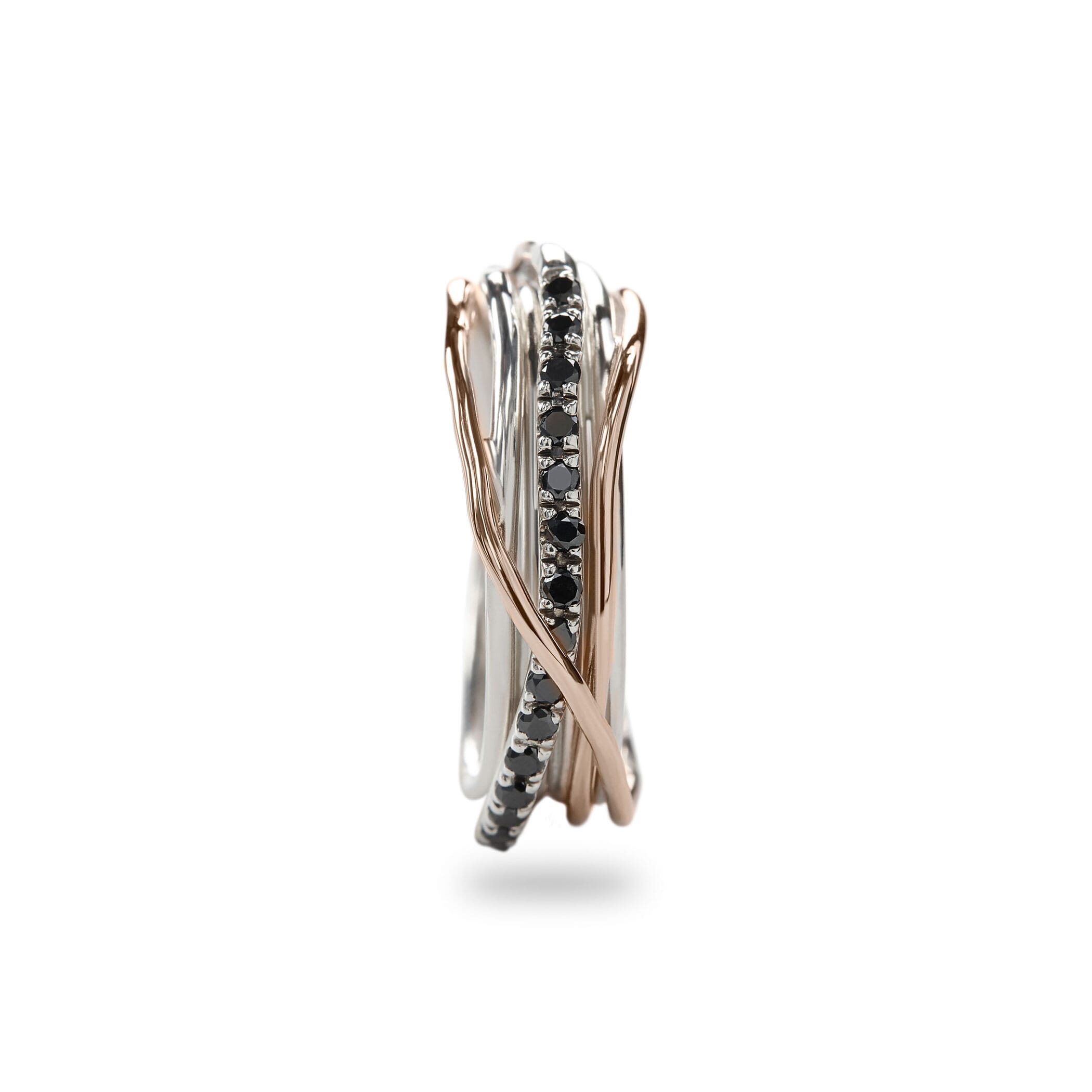 Filodellavita Classic Collection Ring, 7 Strands in 9kt Rose Gold, .925 Silver and 16 Black Diamonds 0.21 ct