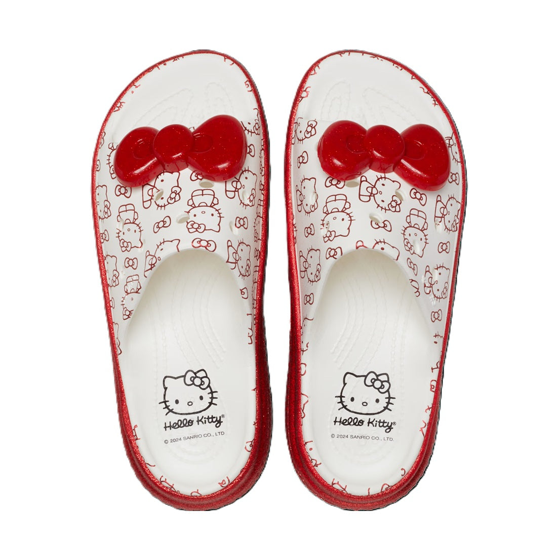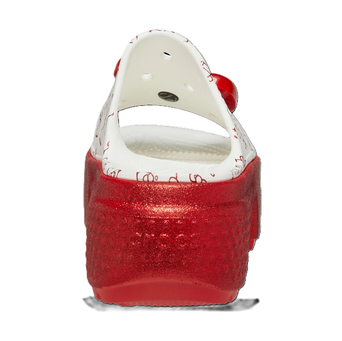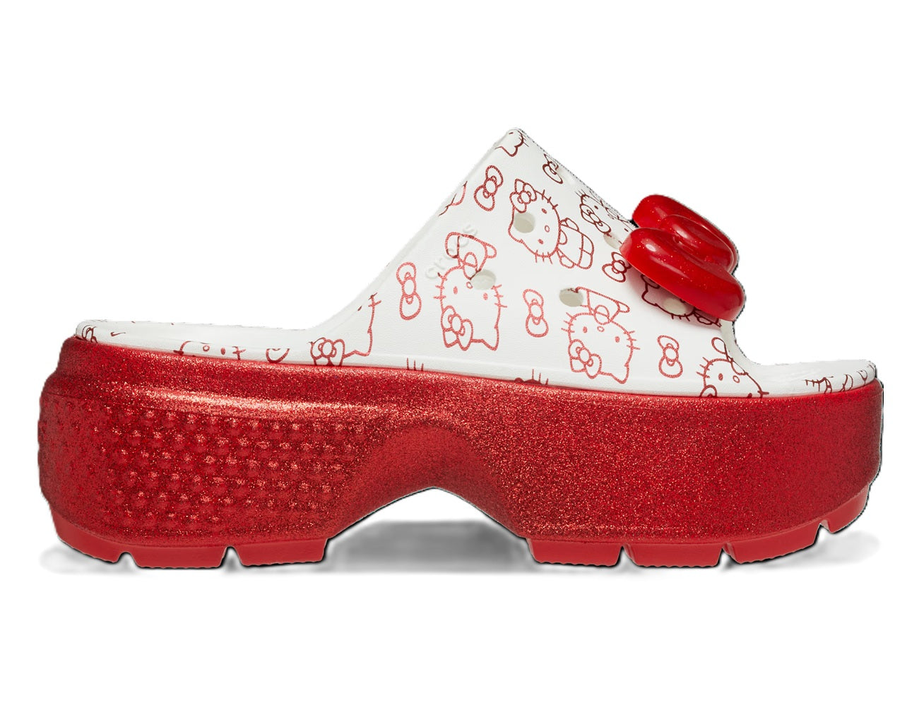 Crocs Hello Kitty Stomp Slide W LIMITED EDITION in celebration of Hello Kitty's 50th anniversary. This Hello Kitty Siren Clog is made for fans who grew up with the global icon and have never lost their shine. With a bold, sparkly sole and comfort that keeps you on your feet, this silhouette is ready for a fun night out with friends. Details: 6.9 cm / 2.7 inch heel height Includes Hello Kitty shiny red bow Jibbitz™ charm Hello Kitty graphics throughout upper Sparkly lug outsole Hello Kitty logo on footbed Printed TPU heel Ventilation ports increase breathability and help shed water and debris Easy to clean and quick to dry Customizable with other Jibbitz charms Iconic Crocs Comfort™: Lightweight. Flexible. 360-degree comfort. Salbini articoli tecnici per sport is a retailer of the Crocs brand.