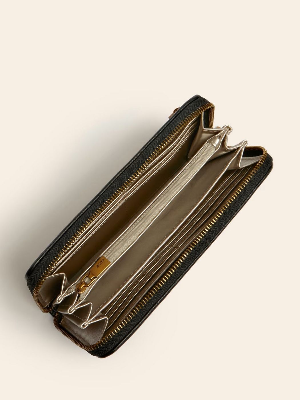 Guess Aviana wallet in faux leather with a 4G logo print and metal logo lettering on the front. Zip closure. Inside, there are compartments for banknotes, documents, and business cards, and a zipped compartment for coins. External back pocket with zip. 21x10x2 cm.