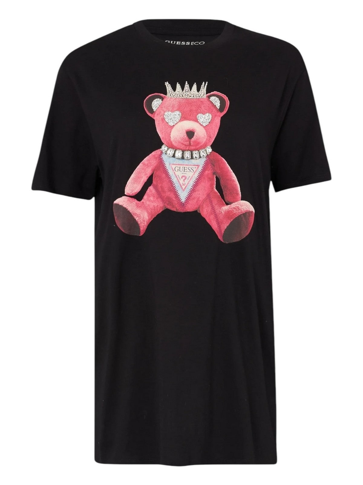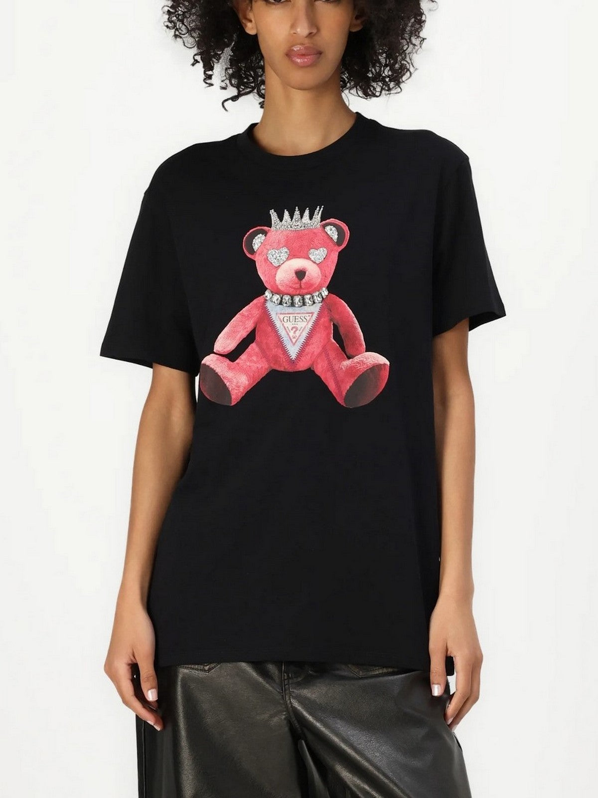GUESS Women's T-shirt SS PINK BEAR NEW CREW TEE W5RI30 K9RM1 JBLK Black