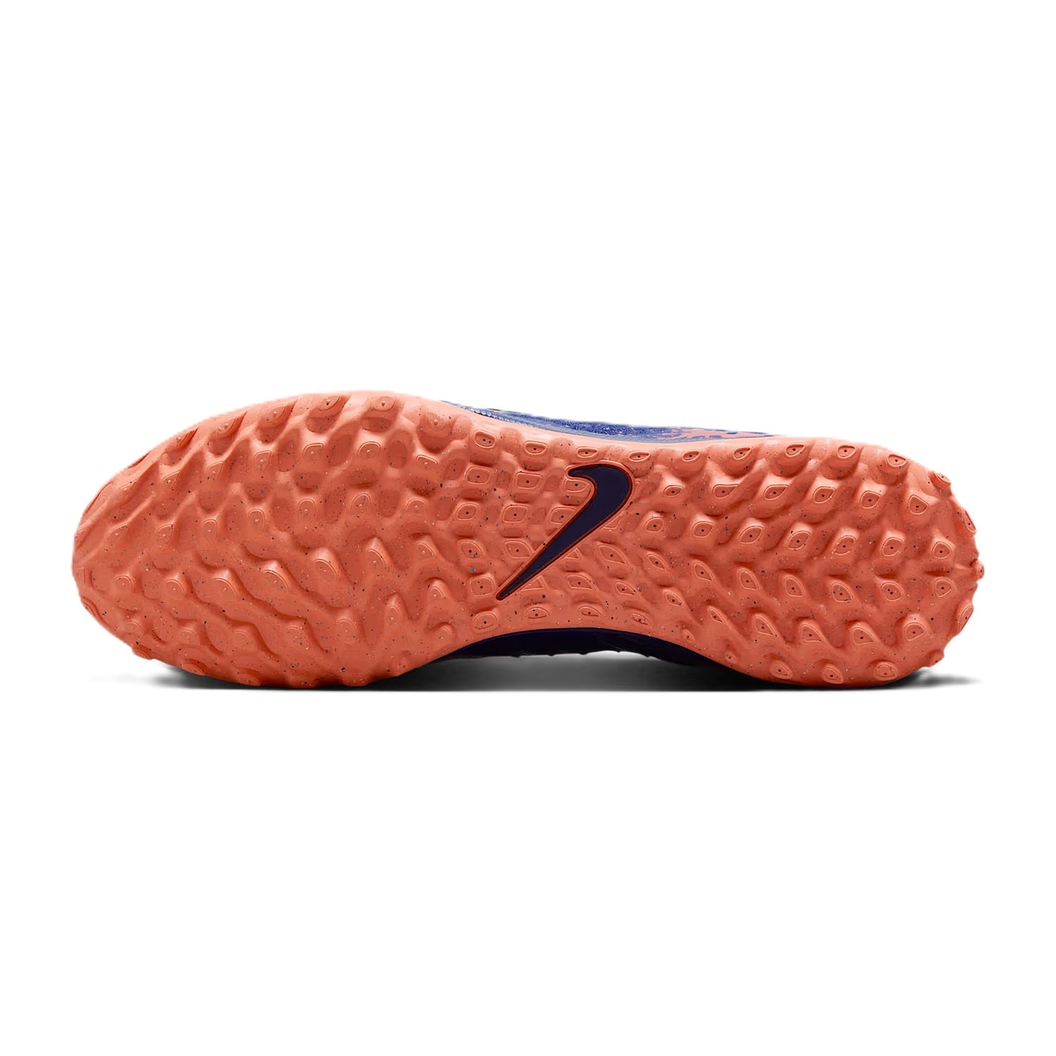 Nike Phantom GX II Erling Haaland Academy TF Soccer Cleats. Erling Haaland is inevitable, his incredible power in front of the net inspired the design of these Player Edition boots, where supernovas and meteors crash into the graphics. Combined with grippy NikeSkin technology, the Phantom GX 2 Academy delivers the precision needed to score. Force of Nature: The dark blue represents the winter skies of Erling's home country of Norway, while the bright orange embodies the luminosity that nature brings. The glossy finish on the upper symbolizes the stars in the sky and the countless goals Erling has scored throughout his illustrious career. Enhanced Touch: The NikeSkin touch zone has been expanded compared to the previous version, bringing the foot closer to the ball for better control when dribbling and passing on dry or wet surfaces. It covers the strike zone of the boot, extending from the side of the big toe through the laces to the pinky, allowing for a clean touch with improved ball feel. Comfortable fit, the soft upper offers consistent comfort from kickoff to the final minute. Ideal for lower-level synthetic surfaces, the cushioned insole. Salbini technical sports items are a Nike retailer.
