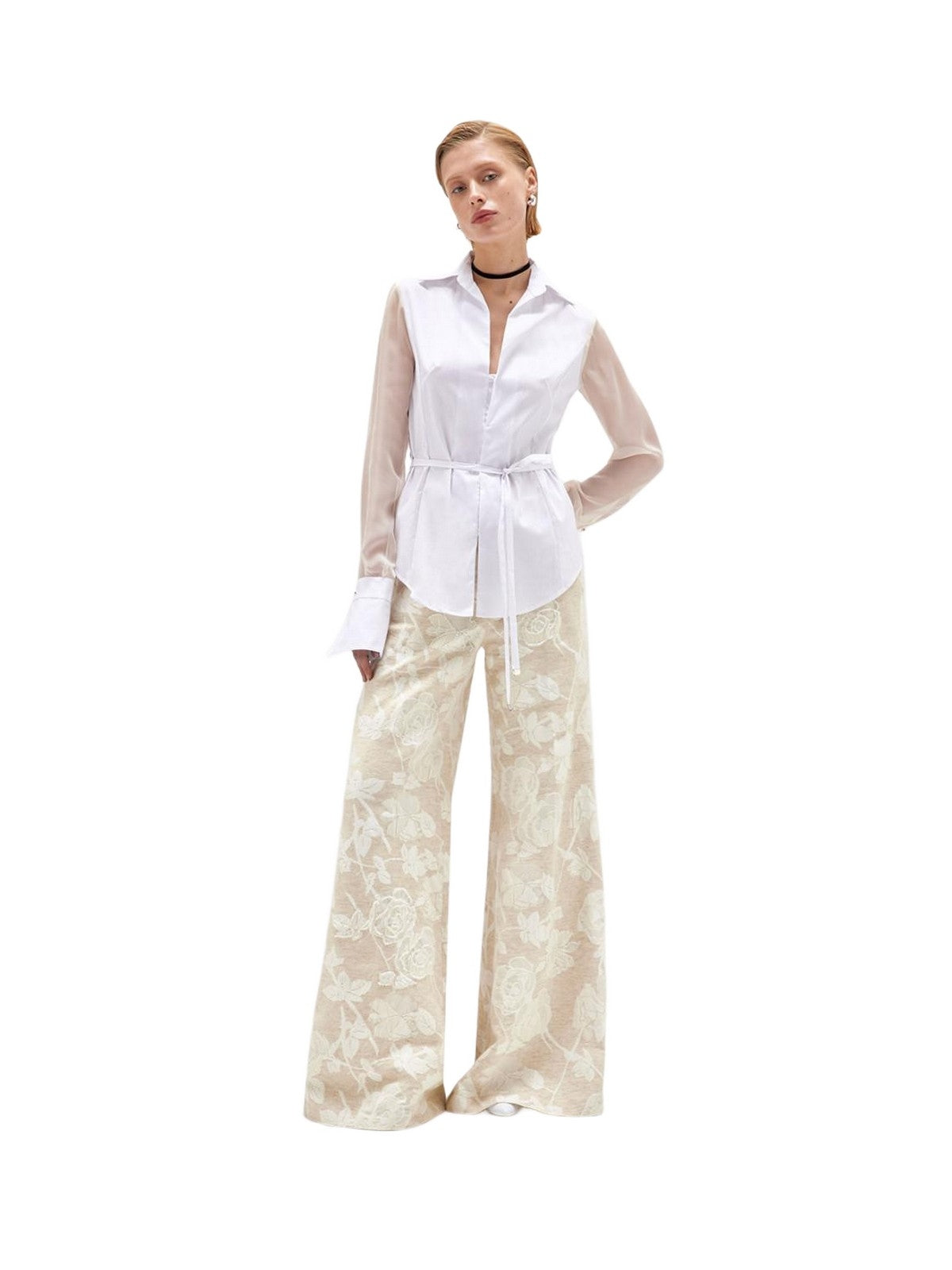 Blugirl Women's Pants - Floral Jacquard Flare Pants - Beige