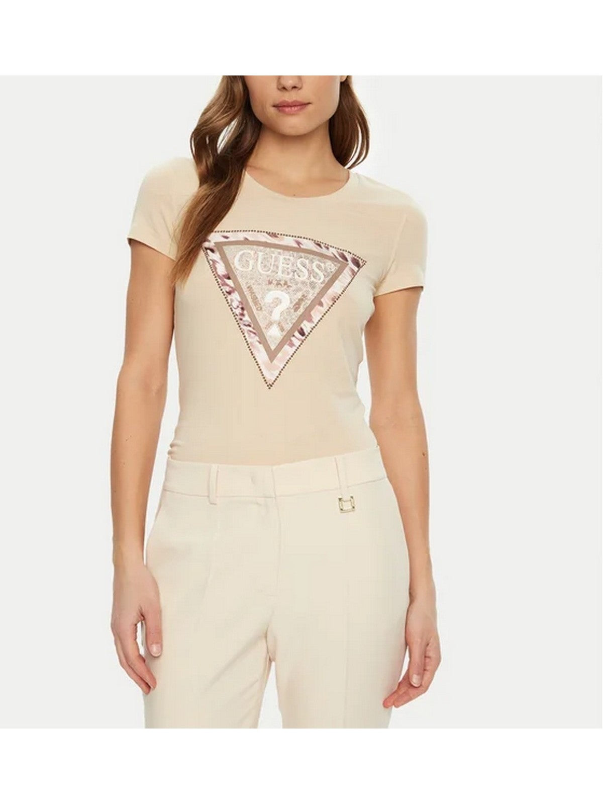 T-shirt femme GUESS SS CN CHEETA LOGO TRIANGLE TEE W5RI22 J1314 G1M5 PEARL OYSTER
