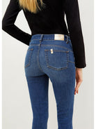 Jean bottom up LIU JO en denim de coton stretch. Taille moyenne, modèle cinq poches, jambe skinny.