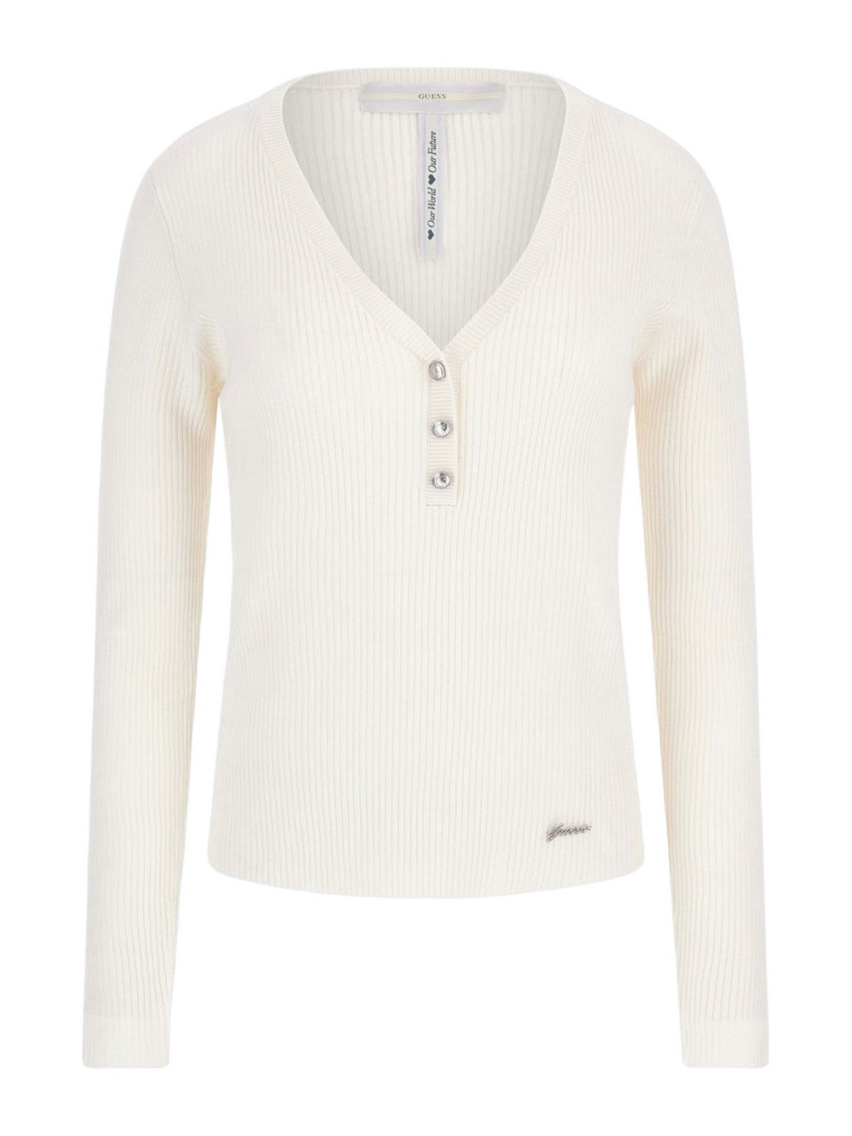 GUESS Pull Femme BLAIRE VN LS HENLEY SWTR W4YR16 Z2V62 G012 Blanc