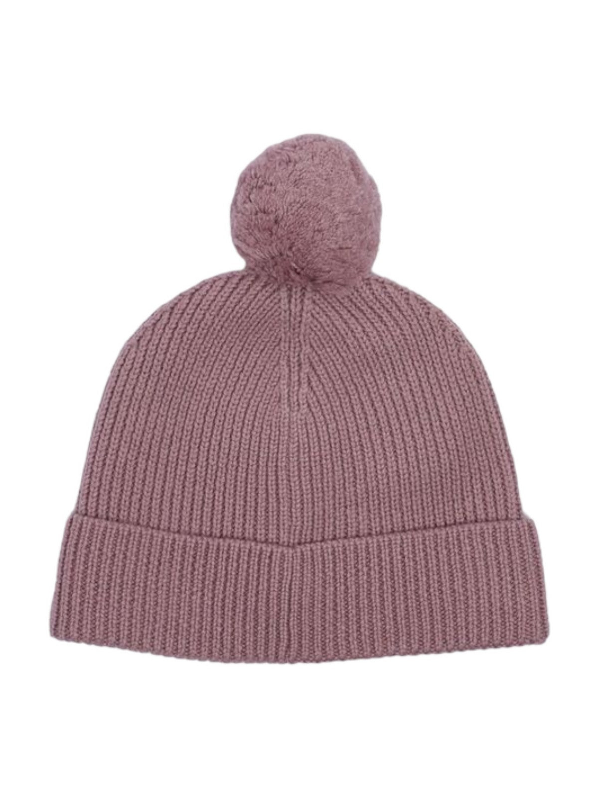 Bonnet K.WAY en laine mélangée tricotée en côtes anglaises avec pompon ton sur ton et revers sur le front pour une double dose de protection.