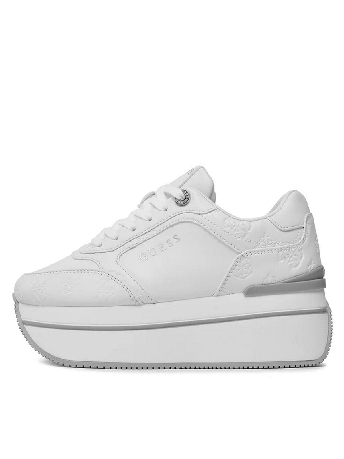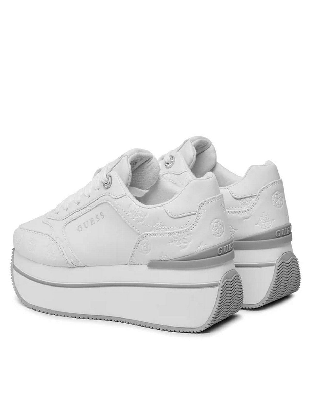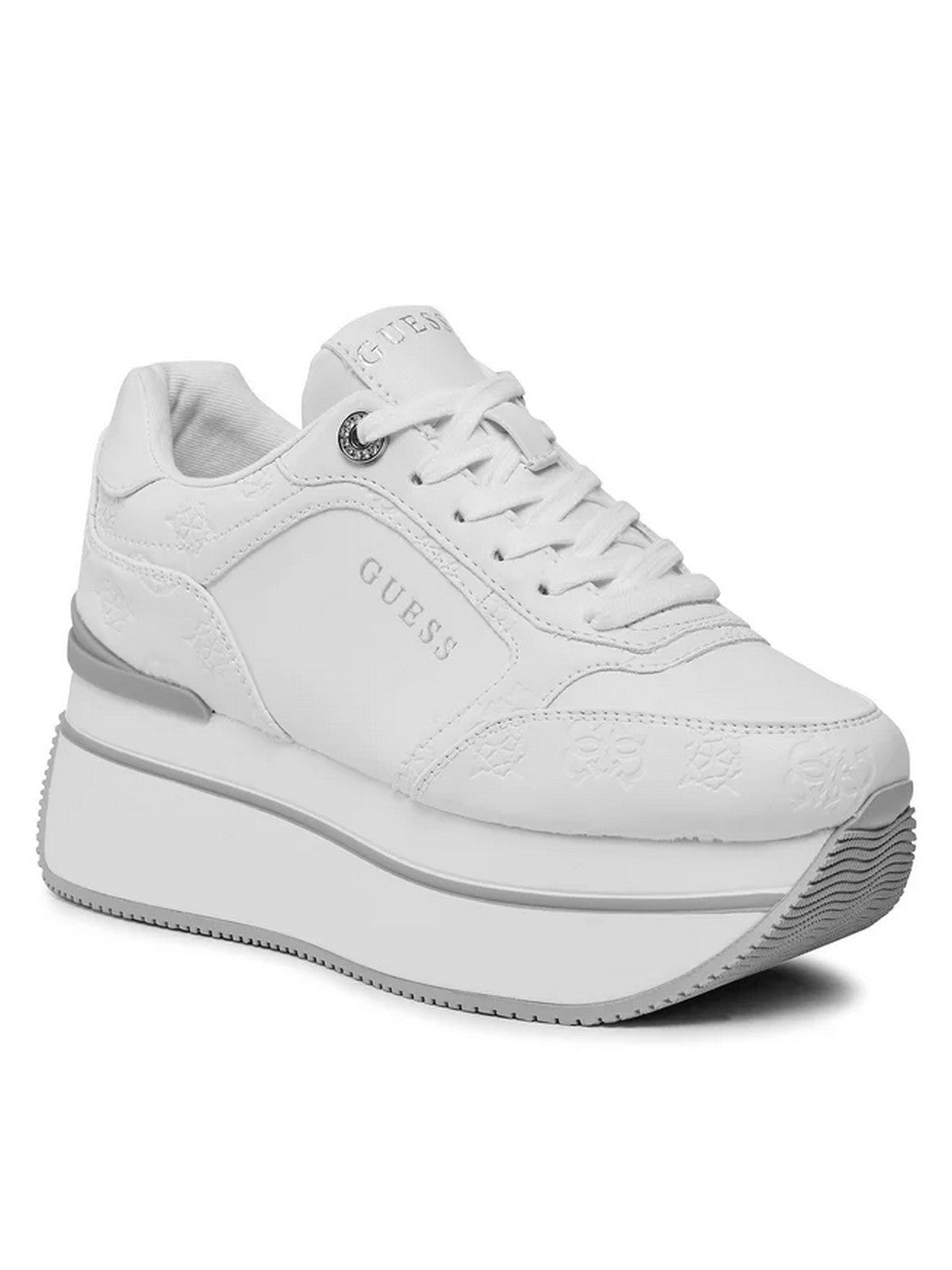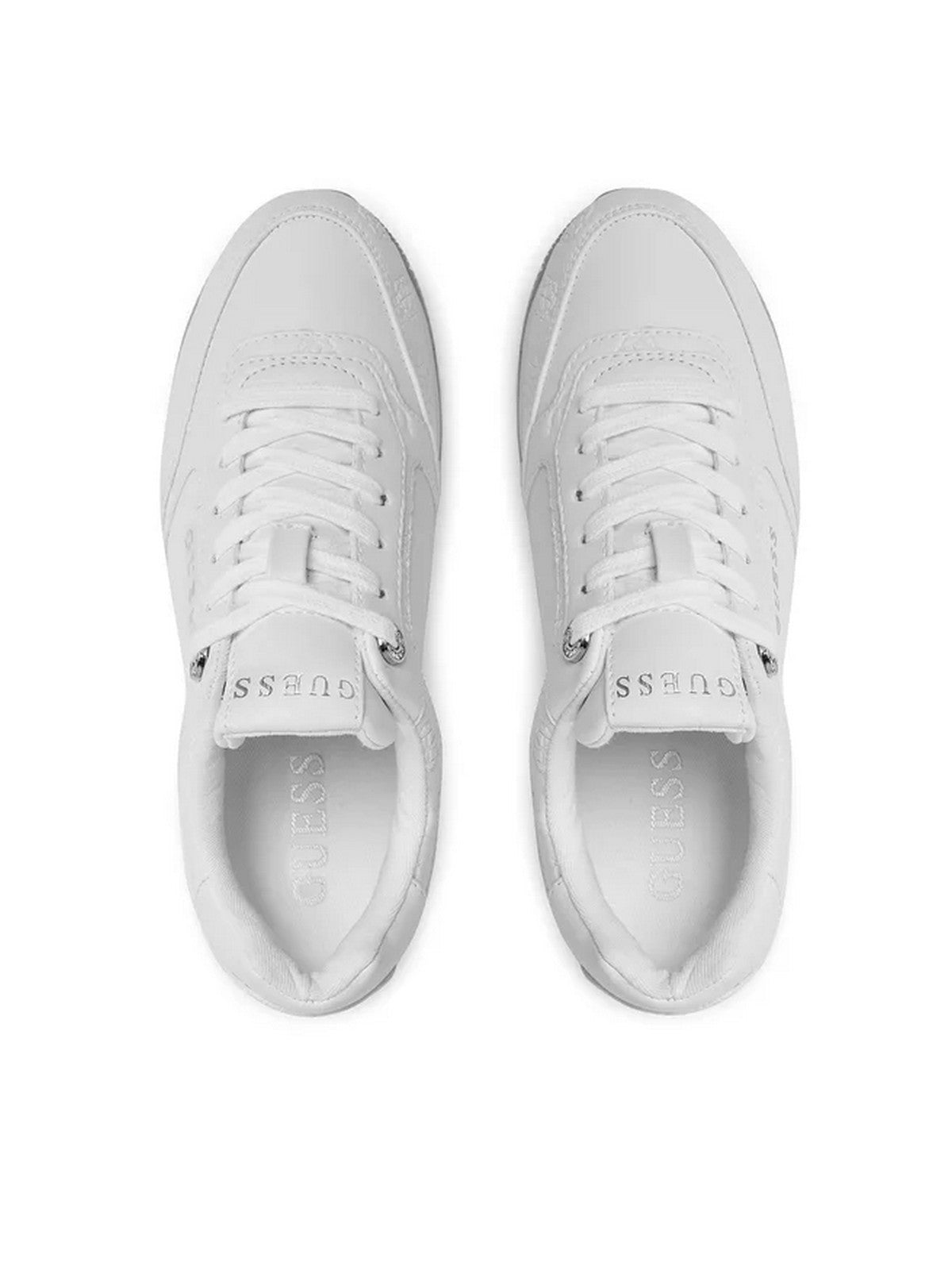 Sneakers donna GUESS in similpelle. Logo ad intarsio tono su tono. Punta arrotondata. Chiusura con lacci. Logo su linguetta, lato e retro. Interno in tessuto. Para alta 6 cm.
