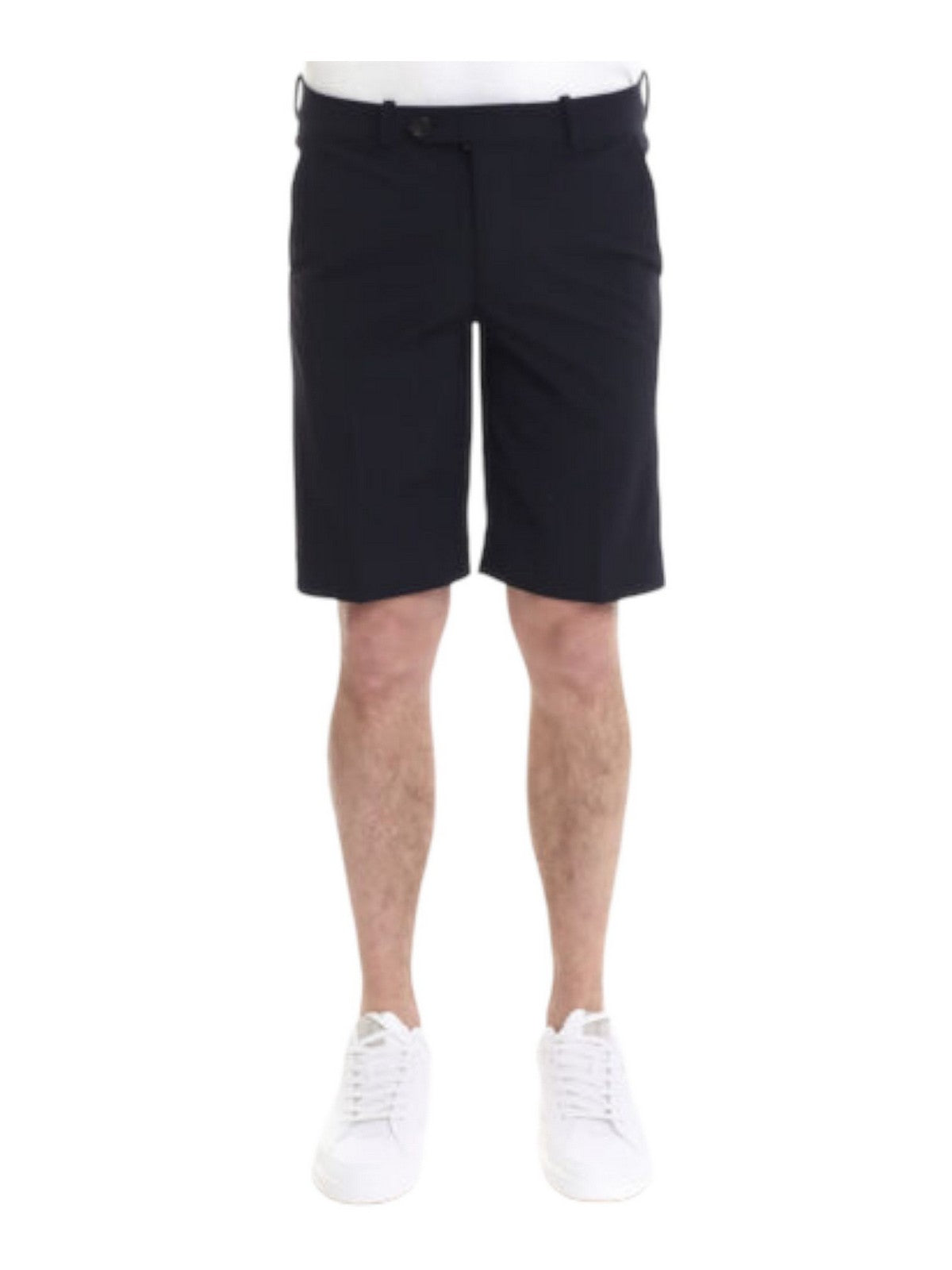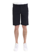 Bermuda RRD in Lycra tinta unita blu. Vita regolare. Chiusura con zip e bottone. Lunghezza sopra il ginocchio. Tasche america laterali e a filetto sul retro.