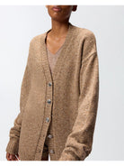 Cardigan Donna Pinko - Cardigan in tessuto bouclé con strass - Beige