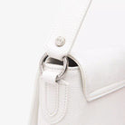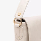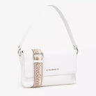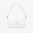 La NeroGiardini, soprannominata "Gorgona", è una borsa a spalla dalla linea raffinata e contemporanea. Realizzata in materiale tecnico bianco latte con finiture in avorio, unisce versatilità e stile sofisticato. Il design pulito è completato da una patella frontale con chiusura magnetica, per un accesso pratico e sicuro al contenuto interno.
