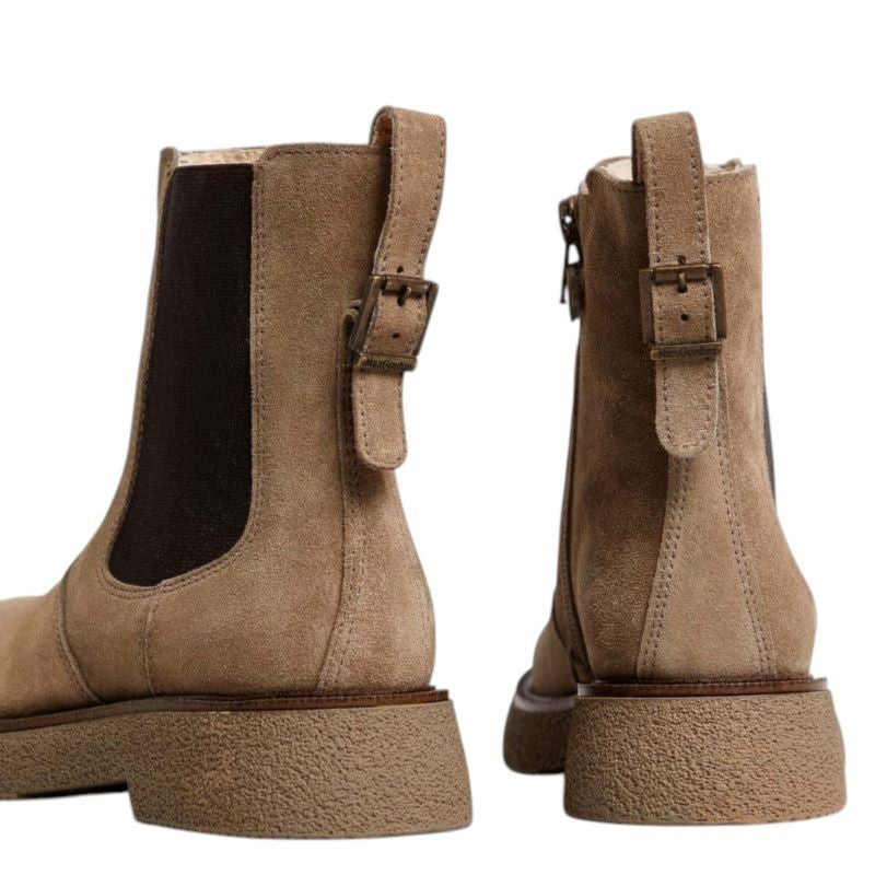 Comodi, versatili e super trendy: questi stivaletti NeroGiardini Junior sono l'ideale per affrontare con stile le giornate più fresche. Realizzati in morbido camoscio color sabbia, presentano gli iconici elastici laterali neri in stile chelsea, che garantiscono una calzata facile e veloce. Il design minimal è arricchito dal pratico passante posteriore e dalla suola in gomma con effetto spazzolato, alta e robusta, perfetta per il comfort quotidiano.