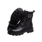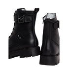 Il design è arricchito da una fibbia metallica laterale e inserti decorativi che donano un tocco rock e raffinato. La chiusura con zip interna facilita la calzata, mentre i lacci frontali permettono una regolazione perfetta. Il fondo in gomma carrarmato assicura una camminata stabile e sicura in ogni situazione, perfetta per affrontare la scuola o il tempo libero con il massimo dello stile.