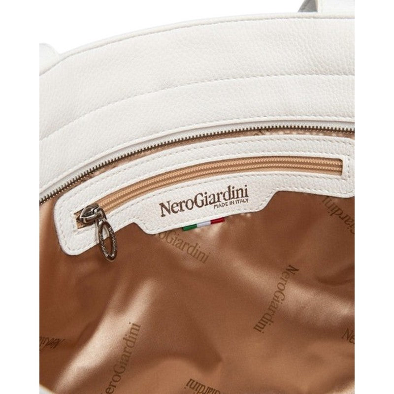 Realizzata in materiale tecnico effetto pelle con stampa monogram NG su fondo bianco, è valorizzata dalla doppia banda fucsia centrale e dal dettaglio in pelle bianca con logo stampato. Un mix cromatico fresco e moderno, pensato per chi ama distinguersi con eleganza.