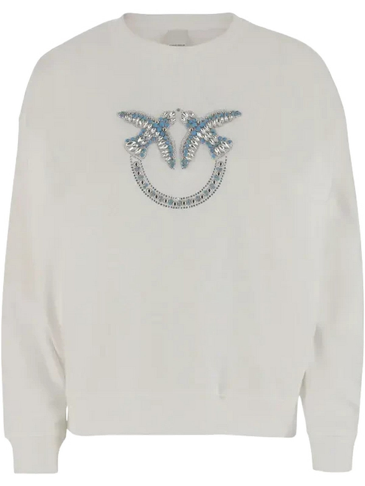 Felpe senza cappuccio Donna Pinko - Felpa girocollo con ricamo gioiello Love Birds - Bianco