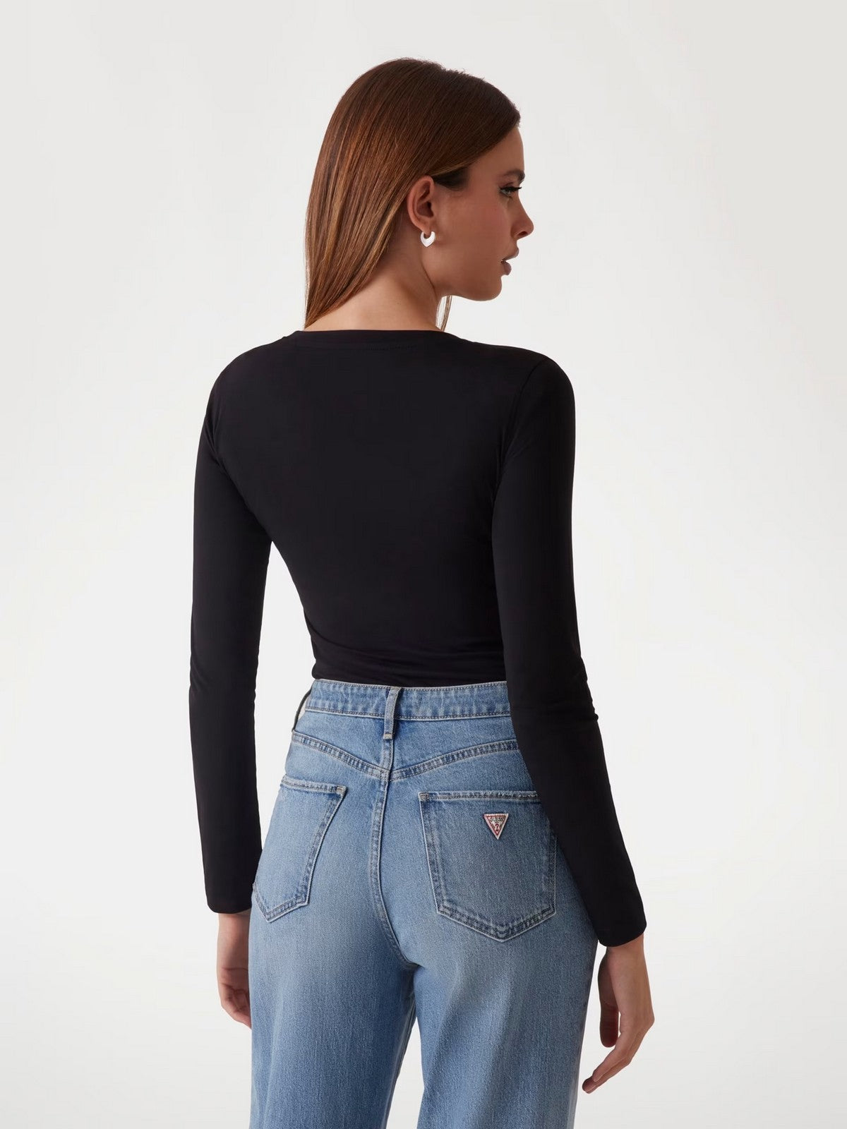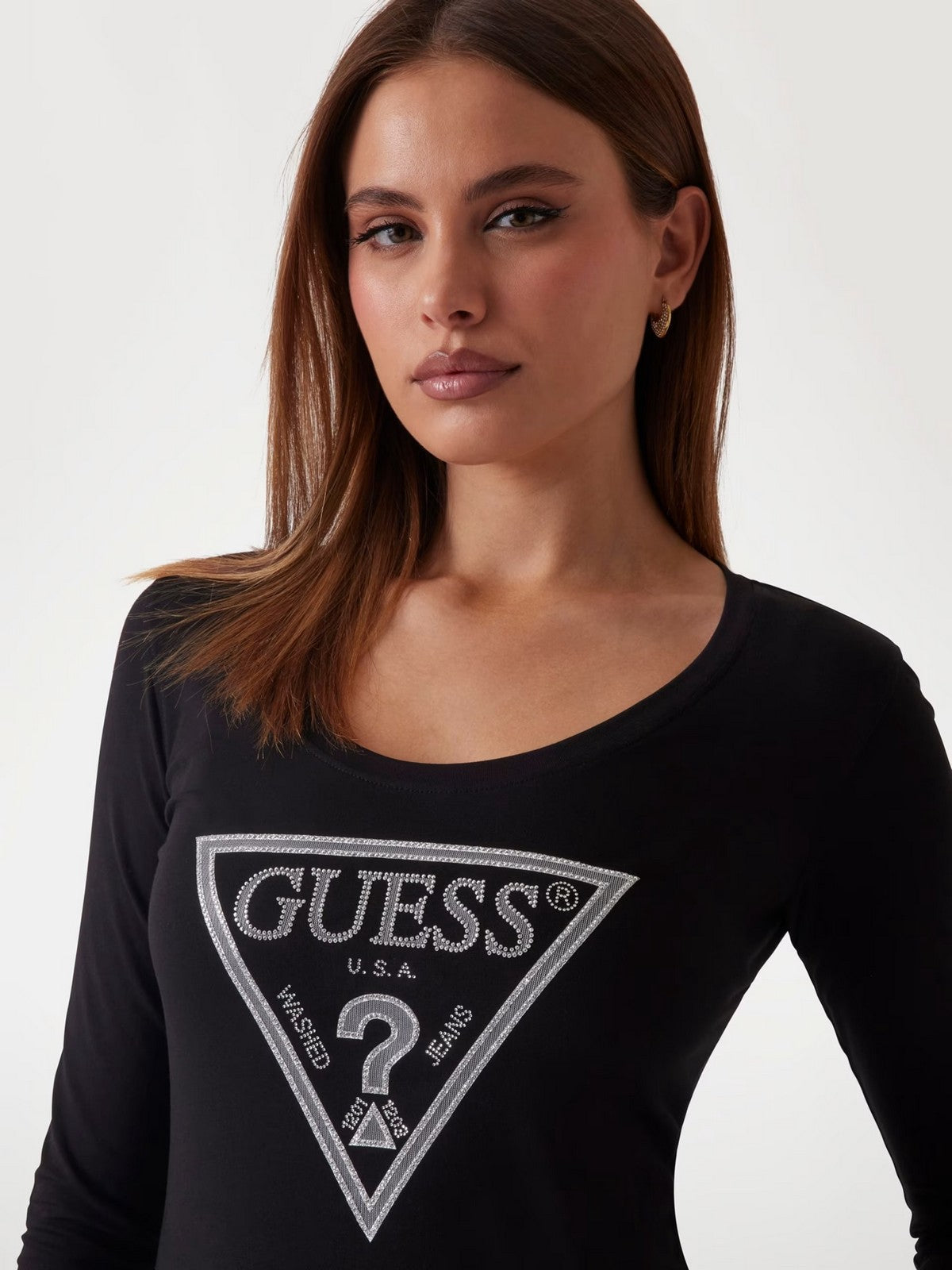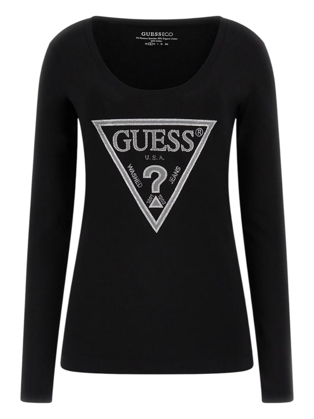 GUESS T-shirt Donna LS CN SHINY TRIANGLE TEE W5RI65 J1314 JBLK Nero