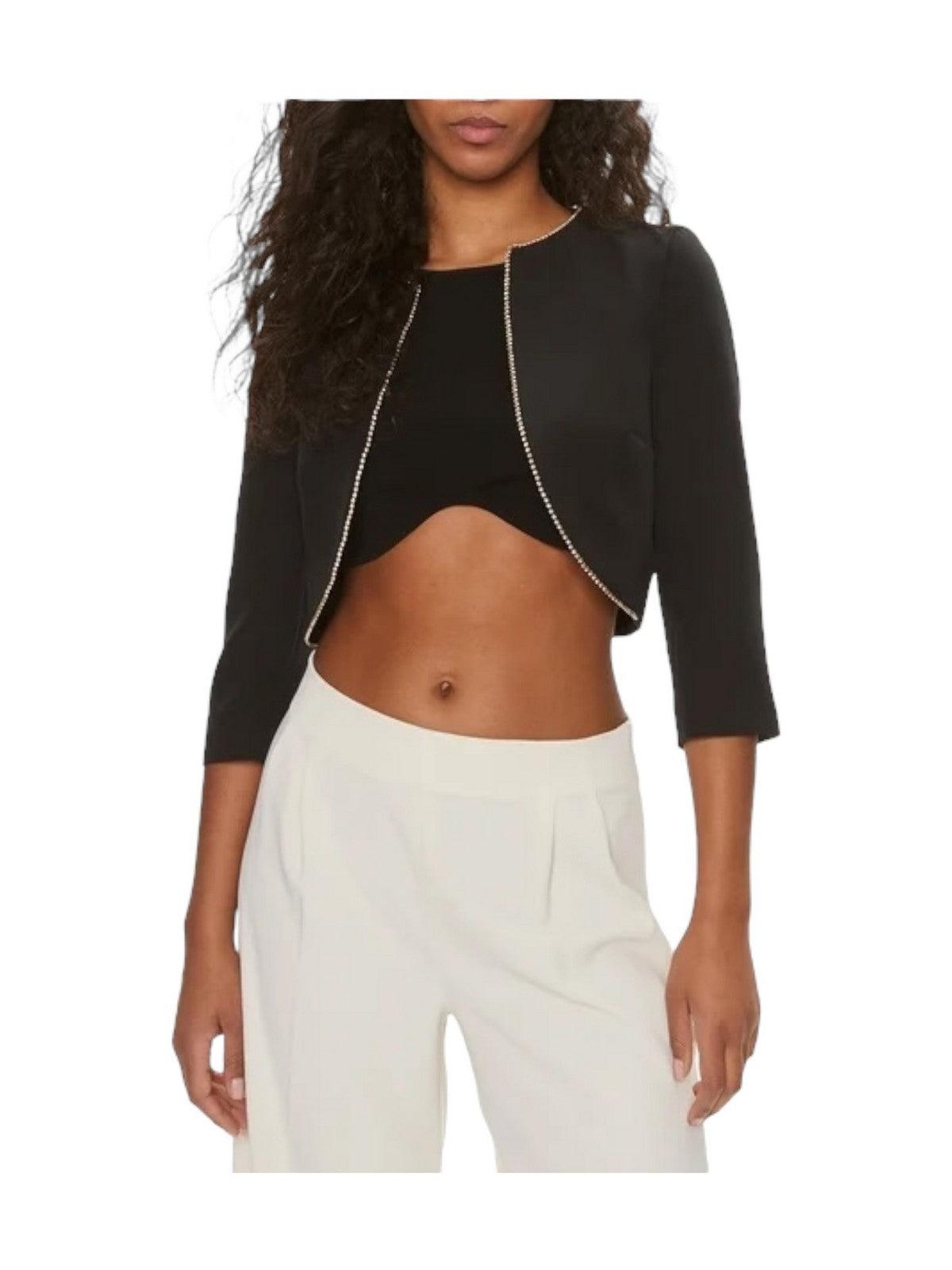 Krótka kurtka LIU JO w jednolitym kolorze z kryształkami na brzegach. Okrągły dekolt i rękawy 3/4. Bez zamknięcia.
