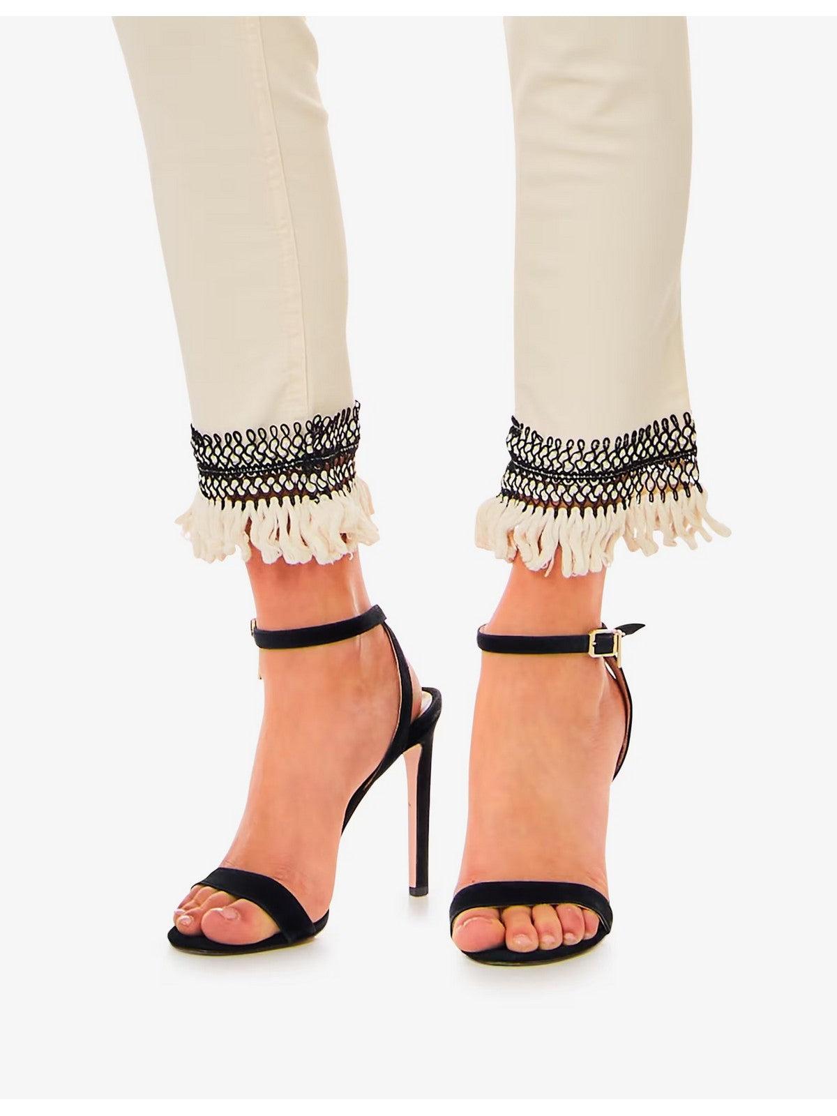 Spodnie LIU JO z bawełny. Regularna talia, wąska nogawka z lekko rozszerzanym dołem, ozdobiona haftem i frędzlami u dołu. Model z pięcioma kieszeniami. Zapinana na zamek i guzik.