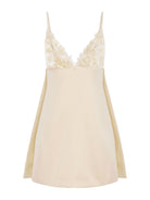 Complete the look with a pair of gold sandals and a matching clutch. The ensemble is perfect for an elegant event, combining sophistication and class in a timeless dress.