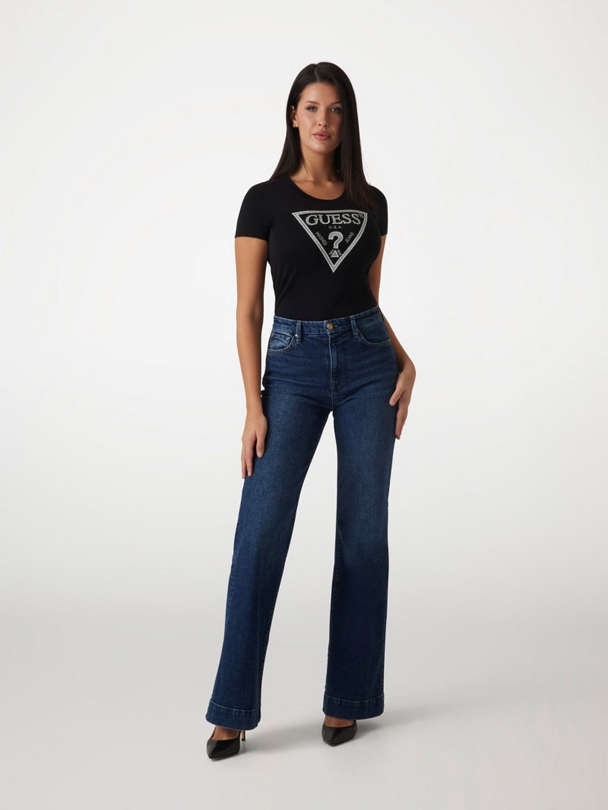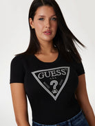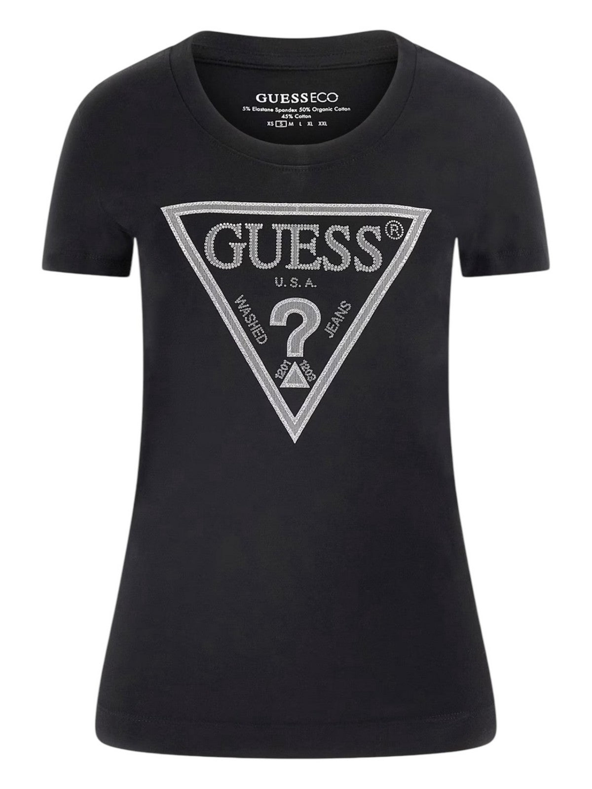 GUESS Women's T-shirt SS CN SHINY TRIANGLE TEE W5RI11 J1314 JBLK Black