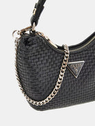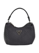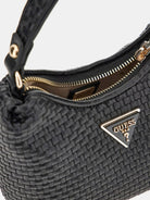 GUESS bag in woven faux leather. Metal triangle logo on the front. Zip closure.