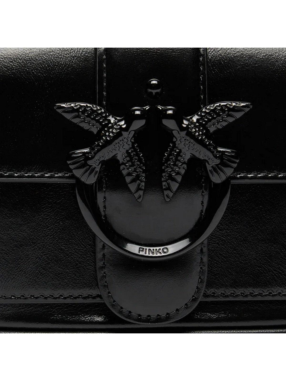 Pocket Love Bag One PINKO z miękkiej, jedwabistej skóry. Zapięcie ze skórzanym etui i małymi ćwiekami uzupełniają ptaki Love w kolorze. Wnętrze wyłożone jest technicznym materiałem i zawiera kieszeń na suwak oraz miejsca na karty kredytowe.