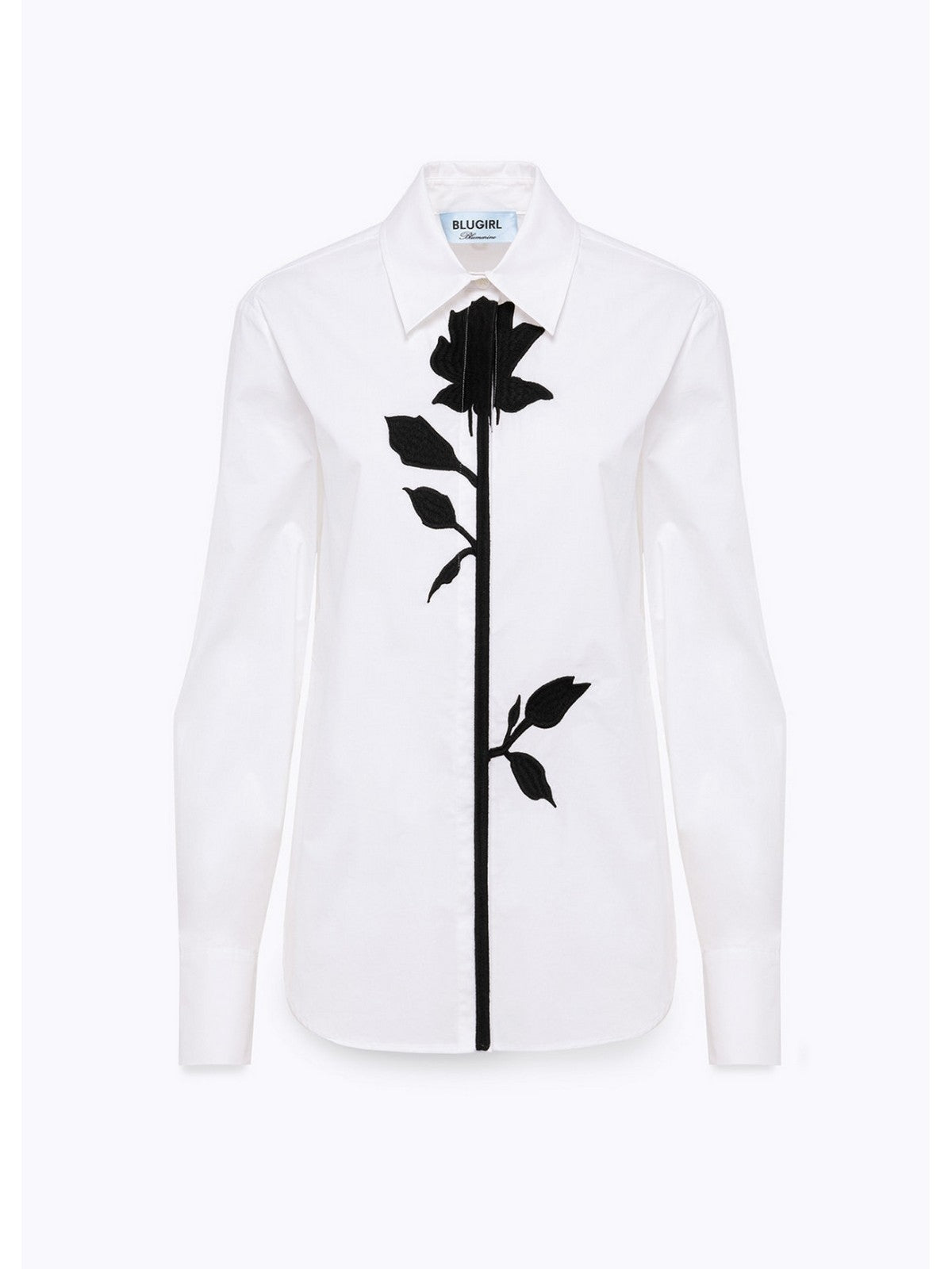 Blugirl Women's Shirts - Poplin Shirt with Floral Patch - White