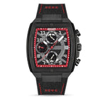 Orologio Ducati Corse cronografo con cassa tonneau da 40mm in acciaio trattato IP nero con quadrante nero e rosso, cinturino abbinato in tessuto nero e rosso cod DTWGO0001503