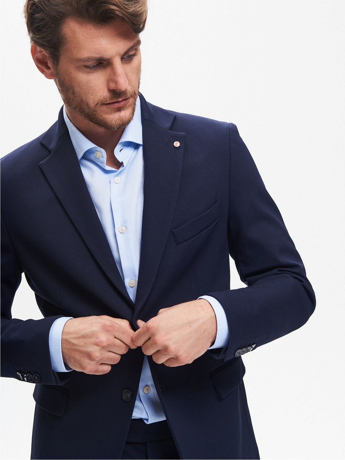 QB24 Men's Jackets - Two-Button Milano Fabric Jacket - Blue