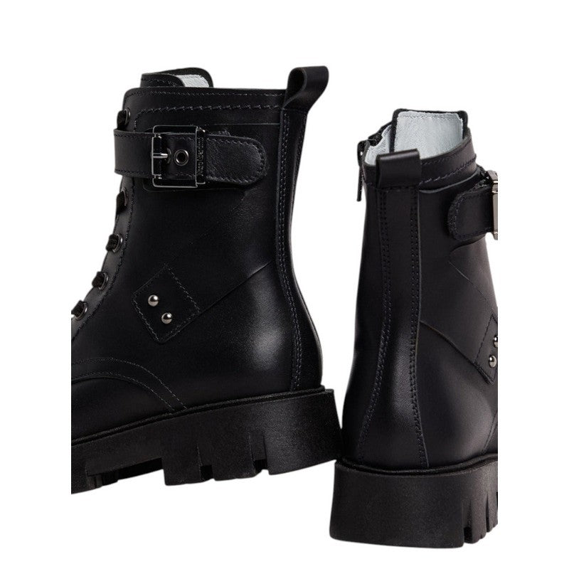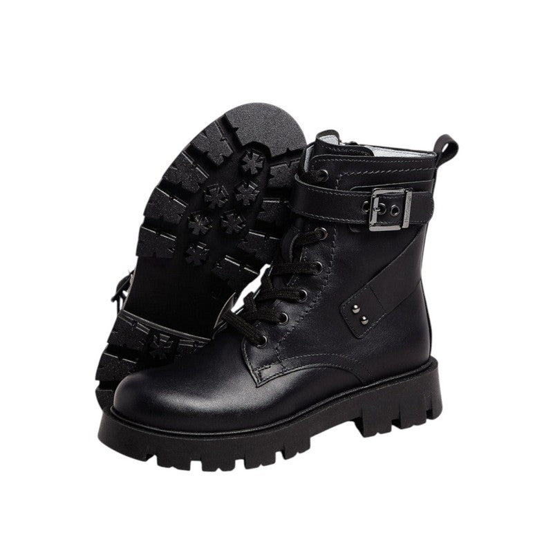 The design is enhanced by a side metal buckle and decorative inserts that add a touch of rock and sophistication. The internal zip closure makes it easy to put on, while the front laces allow for a perfect fit. The rubber tread sole ensures a stable and secure ride in any situation, perfect for tackling school or leisure time with maximum style.